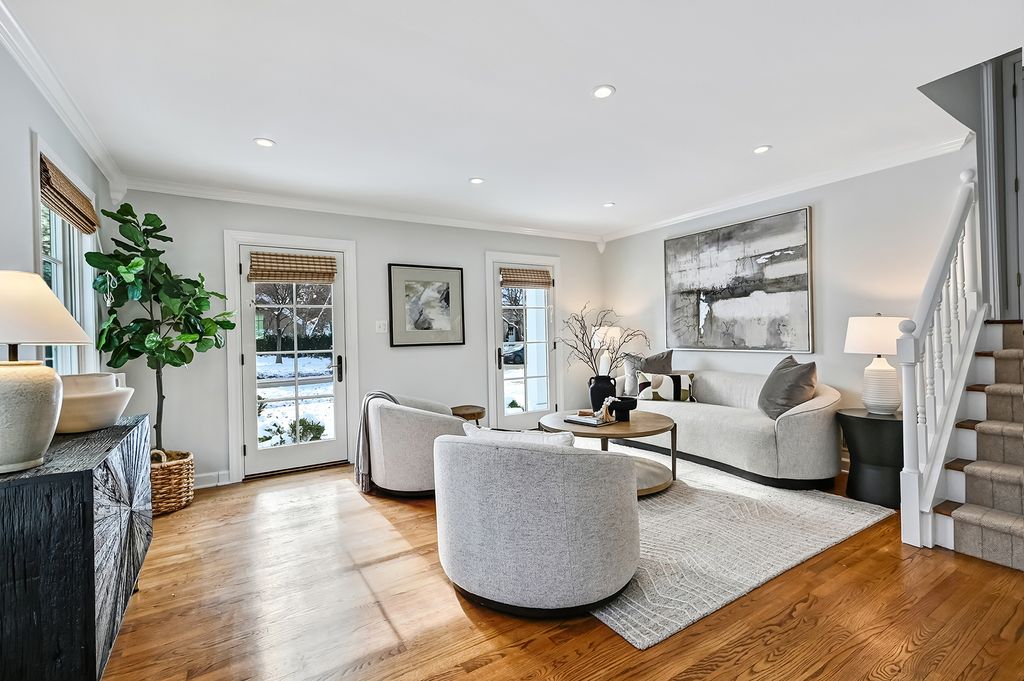 Prime Old Town A+ location! This charming, beautifully updated home blends timeless character with modern convenience. The renovated kitchen offers a large island, quartz countertops and upgraded appliances, opening to a bright family room with wood beams, built-ins, a fireplace and lush backyard views. Inviting front living room showcases French doors that open to the front porch, offering picturesque park views and a perfect spot to relax. The third-floor primary suite provides generous closet space and the opportunity to add a private bath within the existing footprint. Two spacious, freshly painted bedrooms and an updated full bath complete the second floor. Finished lower level adds excellent recreational space along with a separate laundry room. Outside, enjoy a serene retreat on the private deck with pergola, surrounded by mature landscaping. Extensive interior and exterior improvements include newer furnaces, Pella windows, James Hardie siding, architectural roof, new carpet, updated light fixtures, and fresh paint throughout, making this home truly move-in ready in one of the area's most sought-after locations.