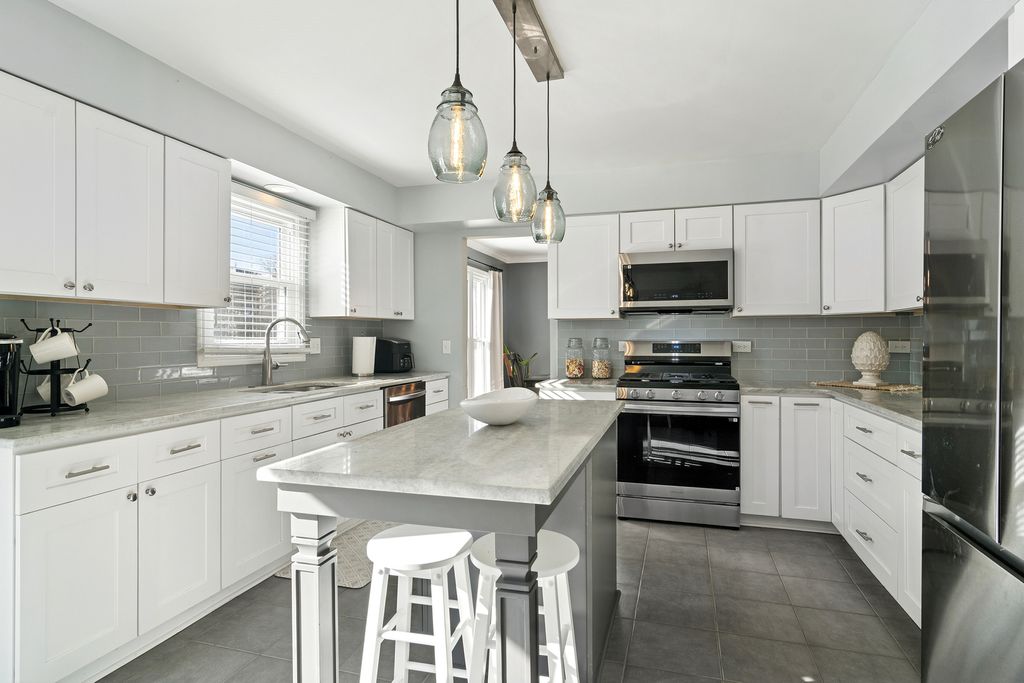 MULTIPLE OFFERS RECEIVED-HIGHEST AND BEST DUE BY 12:00 NOON ON SUNDAY 2/1. EXCEPTIONAL SPACE. INCREDIBLE LIFESTYLE. Located in desirable Terramere neighborhood of Arlington Heights this gorgeous home is built for modern living. From the moment you walk in the door, you can imagine the opportunity to create a lifetime of beautiful moments. With over 3,000 sq feet on the main and second levels and the perfect combination of open and private spaces you'll find just what you need to enjoy both daily living and entertaining. Delightful details, such as crown moldings, a remodeled staircase, upgraded lighting, and a built-in entertaining bar make this home stand out. The kitchen is the heart of the home and features new cabinetry, Carrera white quartz counters, stainless appliances, and glass tile backsplash. An island was added and provides opportunities to interact with family and friends perched on their stools, supervising kids' homework, or countless ways to amp up your entertaining (think holiday or game day buffets!) The inviting family room is sure to provide the perfect backdrop to a lifetime of memories. Whether you're snuggled in for movie night or enjoying your favorite beverage with friends in front of the fire, hanging out in this space is sure to warm your heart. The built in entertaining bar features a sink, built-in beverage refrigerator and display shelving to show off your favorite treasures or special bourbon collection. On this level there is also a 6th bedroom, perfectly suited for a private office or guest suite with nice sized closet and a full bathroom just outside the door. Upstairs, you'll find 5 bedrooms, including a lovely primary suite featuring a generously sized walk-in closet and newly remodeled luxurious spa-like bath with timeless finishes, dual sink vanity, and a walk-in shower featuring large format tile and a light that is also a blue-tooth speaker. Sneak away to this space to unwind with room for your own private sitting area. The secondary bedrooms are very nicely sized and feature new carpeting and good closet space. The remodeled hall bathroom offers the space and features to simplify daily living including dual sinks and mirrors, a vanity full of drawers and a separate linen closet for added storage. The basement is perfect to use now for recreation or storage or finish it to create space suited to you. Not enough good things can be said about this location- neighborhood benefits include seasonal events and social gatherings-recently featuring food trucks. The home is across the street from a small playground, a few blocks from Lake Terramere Park, in close proximity to Buffalo Creek Forest preserve walking paths and nature trails, Nickol Knoll golf course and Walter Payton hill. Top rated schools and easy access to Rte 53 to reach other suburbs, O'Hare, and maybe even a new Bears stadium! This is an exceptional opportunity to live the life you've been dreaming about. The seller has invested approximately $200k in recent upgrades and improvements including remodeled kitchen and baths, windows, roof, furnace, remodeled staircase, remodeled fireplace, remodeled bar area, upgraded lighting, installation of crown moldings, carpeting and office flooring, interior painting, window treatments, smart thermostat, exterior fencing, driveway and sidewalk, and an electric vehicle charger. Contact agent for complete list.
