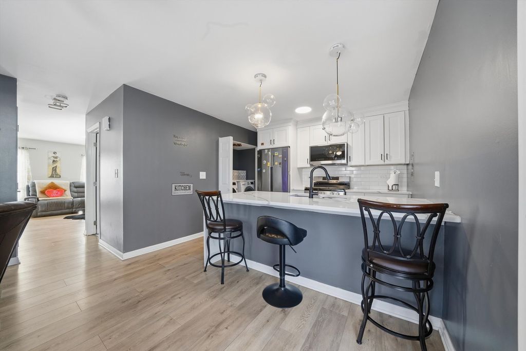 Welcome to 16 Forest Ln, Cary! This fully remodeled 4-bedroom, 1.5-bath corner-unit townhome offers a rare private entrance and a fully fenced, professionally landscaped yard in a quiet, park-like community. Step into a bright, inviting living room featuring a modern electric fireplace, perfect for everyday comfort and entertaining. The brand-new, open-concept kitchen is a true showstopper, complete with shaker cabinetry, quartz countertops, stainless steel appliances, and a stunning waterfall island, plus sliding glass doors that lead to your private patio. The main level also includes a remodeled powder room and in-unit washer and dryer for added convenience. Upstairs, you'll find four spacious bedrooms with new carpeting and ample closet and storage space throughout. Additional highlights include a private 1-car garage with extra driveway parking. The HOA offers fantastic amenities such as a pool, clubhouse, and park. Ideally located near the Metra, shopping, schools, and parks. New windows and a new patio door make this home truly move-in ready.