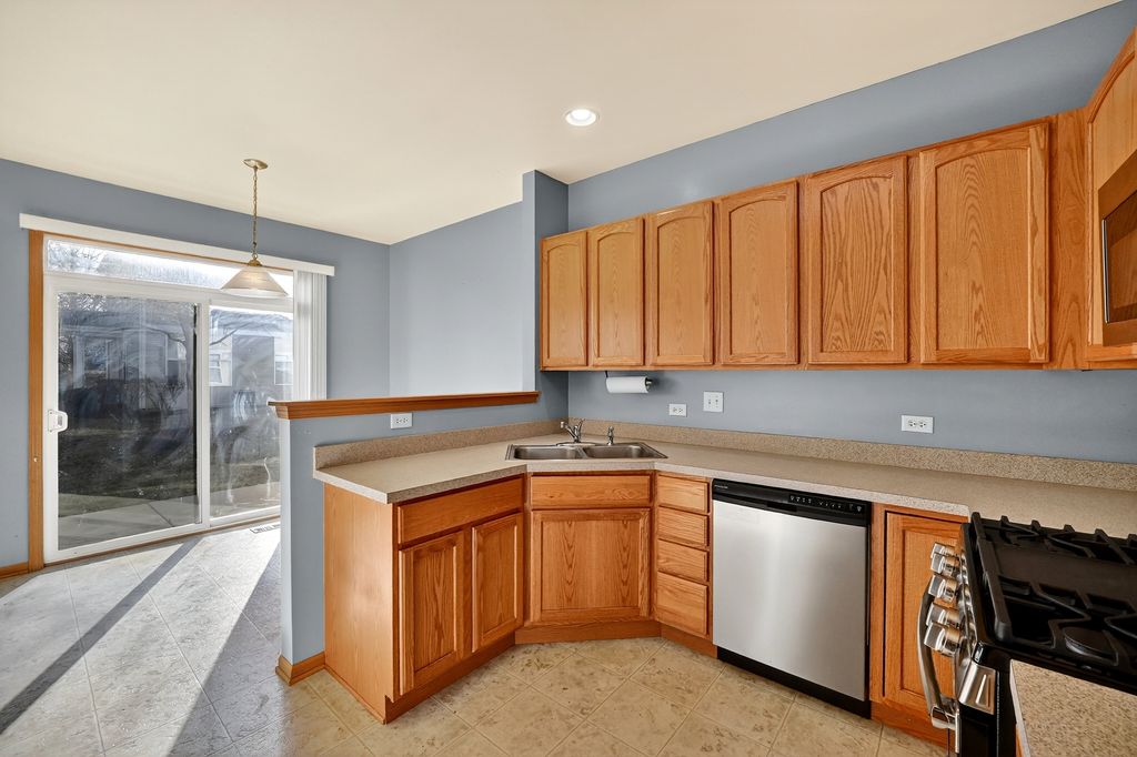 Welcome to 1492 Waterside Dr, Unit 1 in DeKalb, located in the desirable Summit Enclave neighborhood. This well-maintained 2-bedroom, 2.1-bath condo offers 1,439 sq. ft. of comfortable living space with an impressive 18-foot ceiling in the living room, creating an open and airy feel. The kitchen features all stainless steel appliances, including a new microwave and range (2022), and flows seamlessly into the main living area-perfect for everyday living or entertaining. The primary suite offers a private bath, while the additional bedroom and bathrooms provide flexibility for guests or a home office. Additional highlights include a 2-car garage and a concrete patio, ideal for relaxing outdoors. Enjoy quick access to I-88 and Route 23, with nearby shopping, dining, and everyday conveniences just minutes away. A fantastic opportunity to own a move-in ready condo in a convenient and sought-after location!