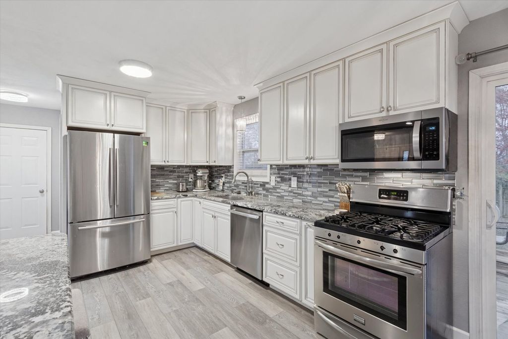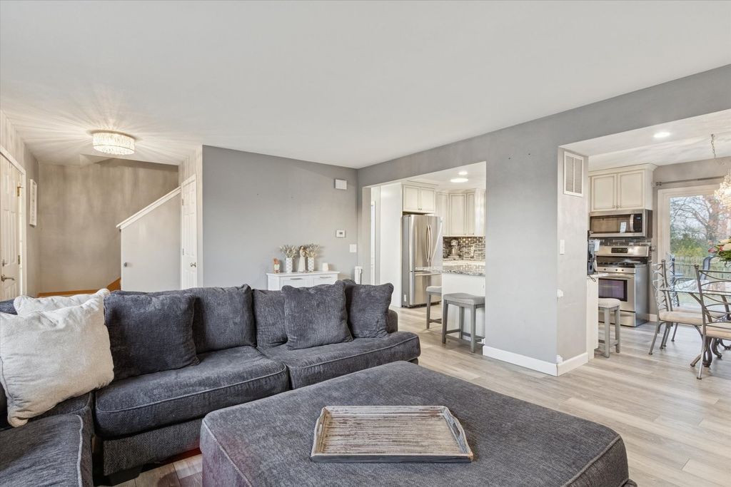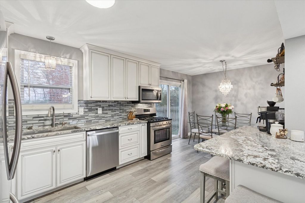 Explore this beautifully remodeled 3-bedroom, 1.5-bath gem that seamlessly blends modern living with comfort. Enjoy the open concept layout that invites light and warmth throughout. The gourmet kitchen features ample cabinetry, stunning granite countertops, large island, and a modern backsplash. Stainless steel appliances are included! The spacious eating area is perfect for gatherings as it opens to the deck and a fenced-in yard, (yard extends behind the fence) making entertaining a breeze! You will enjoy relaxing in the large living room complete with a cozy fireplace for those chilly evenings. Convenience is key with main floor laundry, a half bath, and easy access to an attached 3-car garage. Retreat to the primary suite with convenient access to the shared bath & large closets. Two additional generous bedrooms await you with ample closet space. The lower level offers a partially finished area with tons of storage & room for expansion. Pride of ownership shines through with a new kitchen, laminate flooring, select new carpet, updated light fixtures, and a new water heater. Home warranty offered at closing. Conveniently situated with easy highway access and close to shopping and amenities. This home is perfect for those seeking comfort and style in a great location. Don't miss out-schedule your tour today!