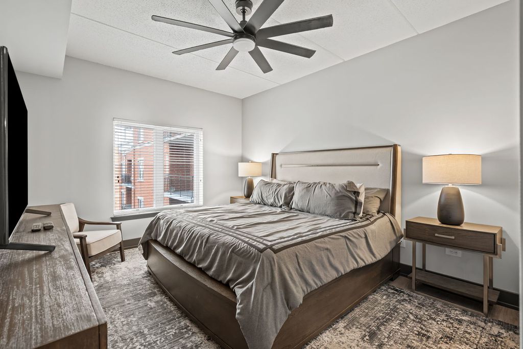 Experience modern luxury living in this beautifully updated 2 bed / 2 bath condo in the highly desirable Metropolitan Building in downtown Palatine. This freshly designed, FULLY FURNISHED unit features quality chic furniture, new flooring, and thoughtfully updated bathrooms-creating a calm, cozy space you'll love coming home to. One of the largest floor plans in the building, this residence offers an inviting open-concept layout with natural light throughout. The expansive, peaceful balcony overlooks a quiet courtyard setting and fills the living room with warm sunlight-perfect for morning coffee or unwinding at sunset. The primary suite is a true retreat, complete with a spacious walk-in closet, a private full ensuite bath, and room to relax. The second bedroom is generously sized and ideal for guests, an office, or additional living space. In-unit laundry adds everyday convenience. This well-maintained building offers heated garage parking, your own private storage unit, and an elevator for easy access. Assessments include water and gas for stress-free living. Located just steps from the Metra, restaurants, shopping, and Palatine's vibrant nightlife-plus a short ride to the future Chicago Bears stadium-this location continues to grow in value and convenience. Rentals allowed for investor flexibility. Enjoy a peaceful, turnkey lifestyle in one of Palatine's most sought-after luxury buildings. Don't miss this rare opportunity!