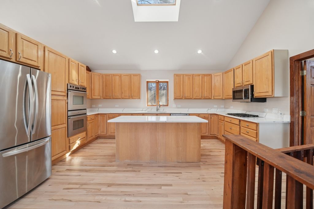 Welcome to this stunning recently rehabbed equestrian property on 5 private wooded acres! Horses and chickens allowed in North Barrington! Brand new circular driveway and brand new roof. Open floor plan w/large living room that has expansive views of the property, wrap around deck, new vinyl plank flooring, bar area w/updated sink, vaulted ceilings, skylights, and updated half bath. Kitchen features spacious Island w/brand new quartz counter tops, new fridge, over sized cabinetry, and eating area w/bay window. 1st floor master features wood burning fireplace, vaulted ceilings, new flooring, and sliders that lead out to 2 over-sized brick paver patios, perfect for those morning cups of coffee with relaxing views overlooking this gorgeous property. Recently rehabbed master bath w/tile flooring, double granite vanity, walk-in closet w/organizer, and new tiled shower. Lower level features family room and 4 bedrooms- all with new flooring. Two bedrooms w/walk out sliders and one bedroom features large walk-in closet w/organizers. Lower level bath recently remodeled. Detached garage w/two parking spaces. Professionally landscaped. Move-in ready. Make this property your private getaway, or your personal sanctuary. Come see this hidden gem!