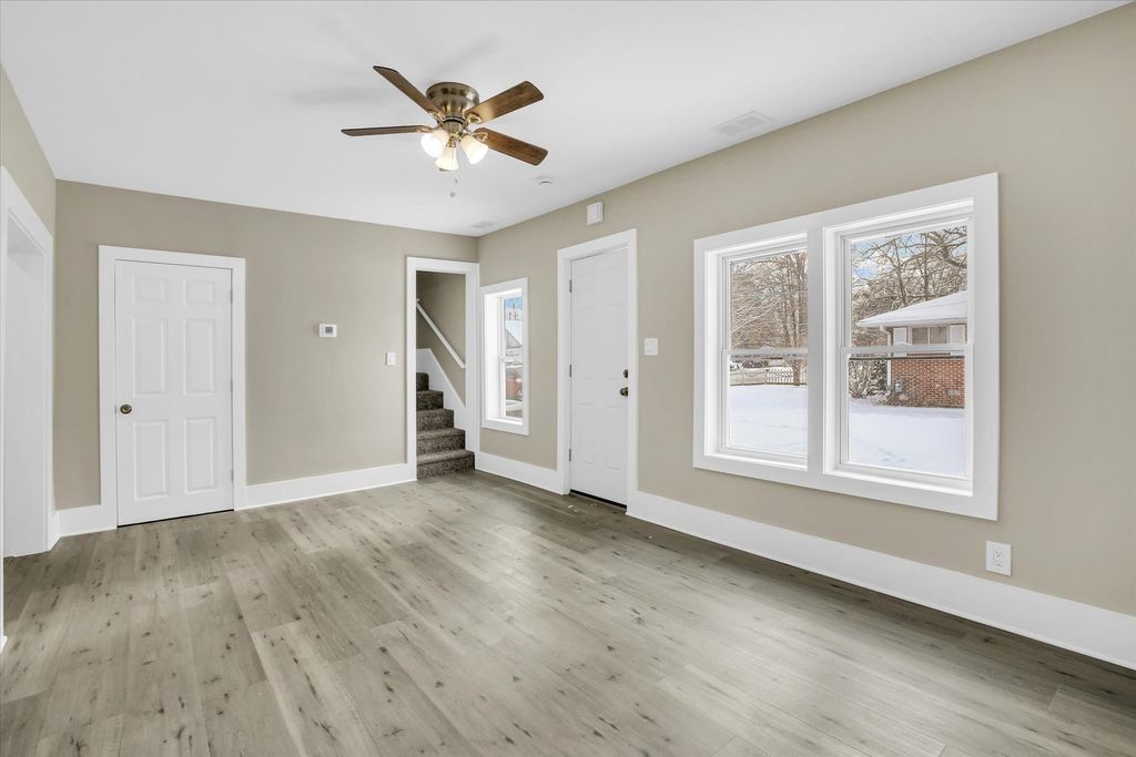 Enjoy this beautifully remodeled 1,700-square-foot home, thoughtfully updated from top to bottom. The spacious first-floor primary bedroom offers comfort and convenience, complemented by first-floor laundry for easy everyday living. Start your mornings in the bright, inviting sunroom-perfect for sipping coffee or tea while tending to your favorite plants. Everything in this home is brand new, including all major mechanicals such as the furnace, air conditioning unit, and water heater, along with a new roof for added peace of mind. Situated on an expansive, nearly half-acre lot, the large, detached garage provides ample space for vehicles, recreational toys, and even a riding lawn mower. Upstairs, you'll find two versatile bonus rooms ideal for a home office, homeschooling, playrooms, or additional flex space to suit your needs. This move-in-ready home offers modern comfort, generous space, and endless possibilities. Schedule your private showing today!