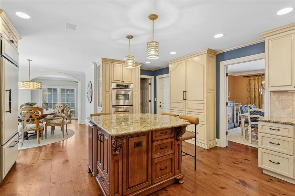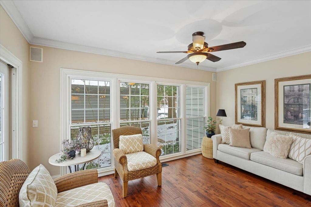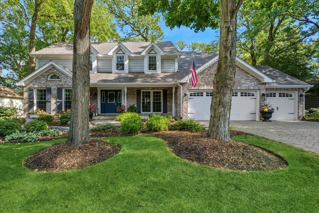 Located in Naperville's prestigious Walnut Hill neighborhood, this stunning property offers over 3,900 square feet of sophisticated living surrounded by a serene, wooded backdrop. A paver brick driveway and three-car garage create striking curb appeal, while the private backyard retreat features a screened-in gazebo, ideal for elegant outdoor entertaining. A grand two-story foyer introduces the home's designer-inspired aesthetic, with curated finishes and thoughtful architectural details throughout. The gourmet kitchen is beautifully appointed with high-end appliances, custom cabinetry, and a generous eating area, seamlessly connecting to the sunroom and vaulted-ceiling family room. Formal living and dining rooms add timeless elegance, complemented by a private den perfect for today's work-from-home lifestyle. The upper level features spacious bedrooms, highlighted by an oversized primary suite offering a true luxury escape, including his and hers cedar lined closets. The large spa-like primary bath boasts heated floors, soaking tub, double vanity, and laundry. All bathrooms have been recently renovated with luxurious, high-end finishes. The fully finished basement elevates the home's entertaining appeal with a built-in bar, game room, additional family room, and private guest bedroom and full bathroom. Conveniently located near Whalon Lake and served by award-winning Naperville District 203 schools, this gorgeous home offers a rare combination of refined luxury, privacy, and a premier location.