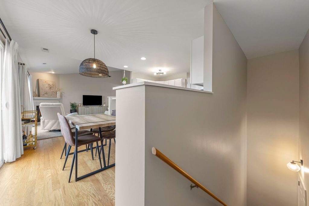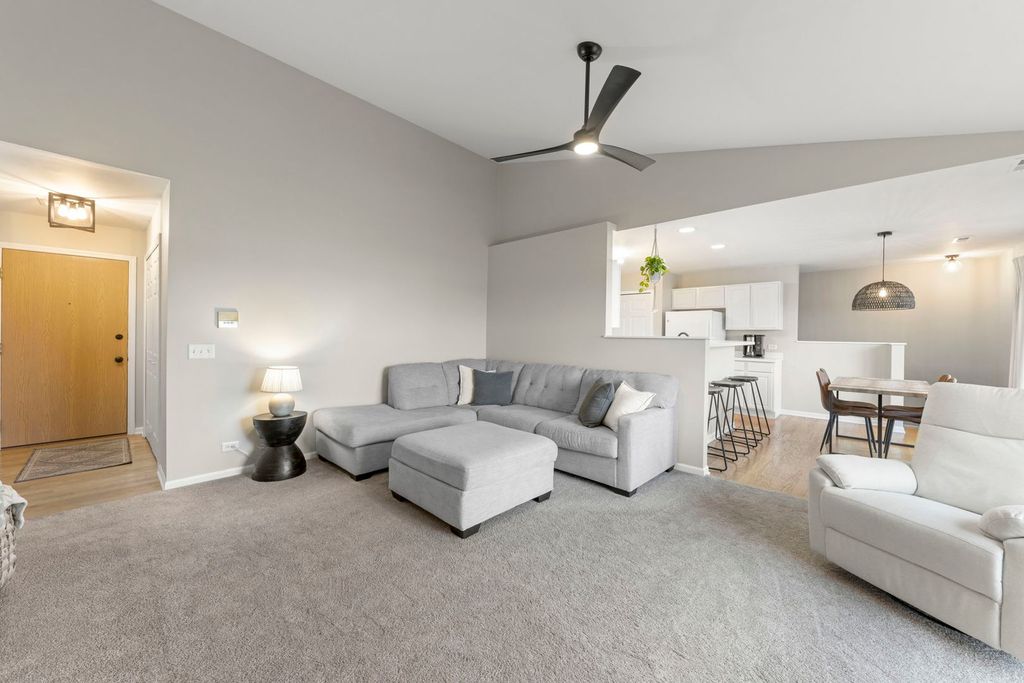 Welcome to this charming, move-in-ready 2-bedroom, 2-bath penthouse condo in a quiet, private four-unit building, tucked into one of Sycamore's most desirable locations. This light-filled home offers the rare combination of privacy and convenience, with direct exterior access from the unit to green space, perfect for your four-legged friend, enjoying fresh air, or unwinding at the end of the day. Inside, you'll find a warm and inviting living room with soaring ceilings, a gas fireplace, and large sliding doors that flood the space with natural light while leading to your private balcony. The well-appointed kitchen features hardwood floors, ample storage, and updated appliances, making it ideal for both everyday living and entertaining. The spacious primary suite offers two generous closets and a private ensuite bath, while the second bedroom provides a flexible guest room or home office. In-unit laundry with washer and dryer adds to the ease of daily living. Additional highlights include a private attached garage, newer furnace (2022), air conditioning (2022), and stove (2022), energy-efficient windows, newer carpet and custom blinds, along with updated light fixtures and fresh neutral paint throughout. Just steps from Sycamore's restaurants, shops, and everyday conveniences, this home delivers effortless penthouse living in a beautifully maintained setting. With Northern Illinois University just minutes away, it also appeals to faculty, professionals, or anyone who values proximity to campus while enjoying a quieter, more residential environment. A thoughtfully designed penthouse that makes it easy to imagine this becoming home.