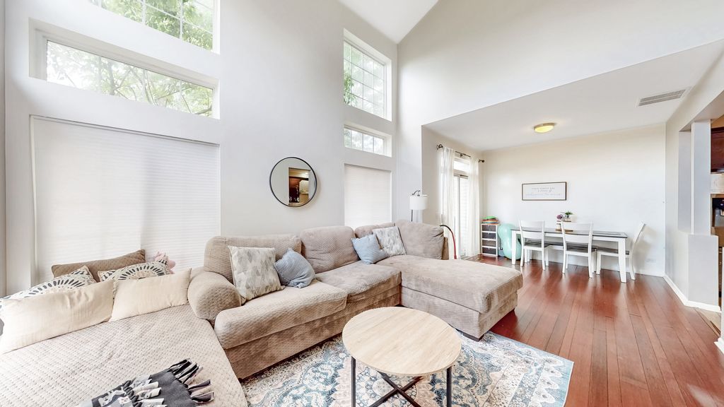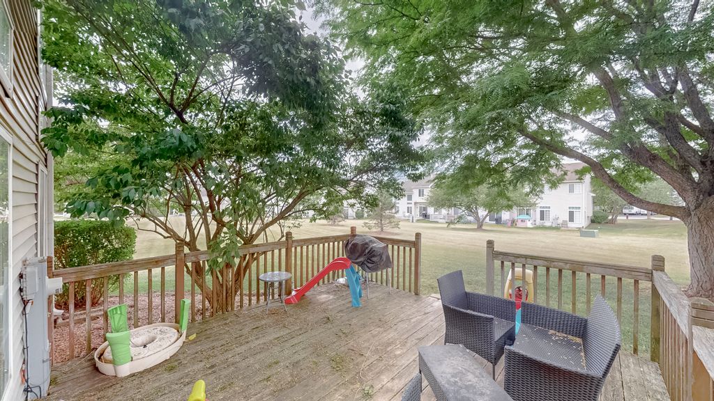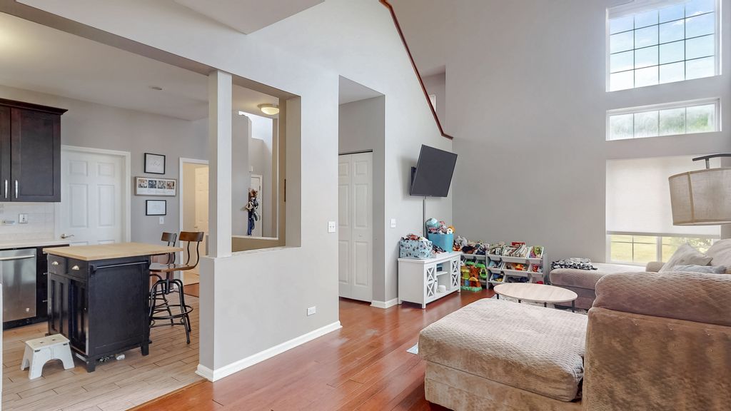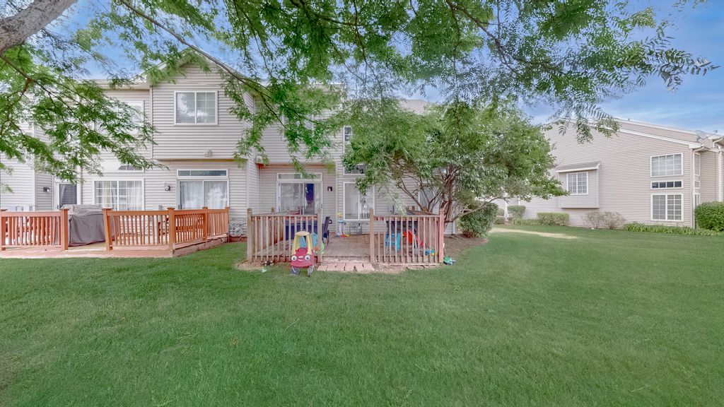 Beautiful 2 bedroom, 2.5 bathroom Lake in the Hills end unit townhome! With an updated kitchen, spacious family room, and deck that opens to a large common area this home is great for any buyer! The open air two-story foyer, and an open floor plan throughout allow for great entertaining. The updated kitchen features stainless steel appliances, wood grain tile, and bright lighting. The spacious two-story family room offers large bright windows with hardwood flooring. It also flows nicely into the dining area and right out onto your back deck! On the second floor, you will find a large master suite, full bath, and an additional bedroom. This townhome is in a PRIME location in Lake in the Hills!