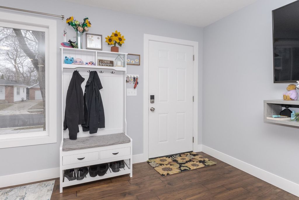 Totally renovated three bedroom ranch style home featuring an open floor plan, you'll love the bright and cheerful designer kitchen updated with white cabinetry, breakfast bar, stainless steel appliances, upgraded countertops, sink, faucet, tile backsplash, and beautiful hardwood flooring throughout. Enjoy a fantastic sized, fully fenced yard with mature trees perfect for relaxing or entertaining. One car attached garage. The full bath was completely remodeled with luxury vinyl flooring, tub shower, vanity, commode, lighting, and mirror. Newer carpet in all bedrooms. Major updates include new electrical, plumbing, drywall, trim, doors, lighting, furnace and central air 2019 plus new siding, windows, gutters and roof in 2020. Ideally located near Lakeside country club in the sought after Oakland grade school. This one won't last schedule your showing today! Super cute, move in ready!
