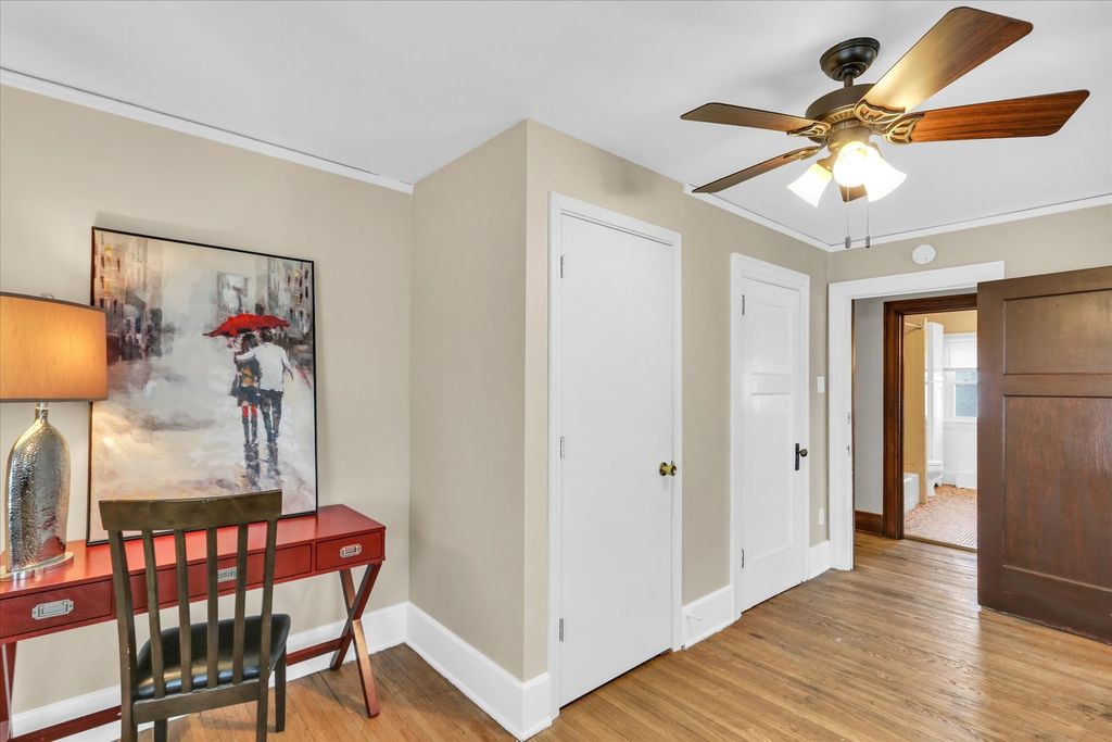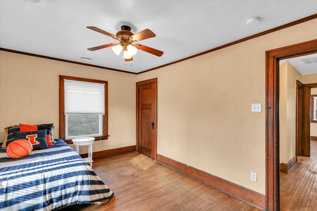 Prime location just off the U of I campus, this American Four Square offers classic character and versatile potential. Inside, you'll find hardwood flooring, updated windows, tall ceilings, and a beautiful fireplace with surrounding built-in cabinets that anchor the main living space. The dining room overlooks a large, fenced backyard. The first floor also includes a full bathroom and an additional enclosed porch offering many possibilities for use. Upstairs, the second floor features four generously sized bedrooms and an additional full bathroom. With its functional layout, desirable location, and reasonable price, this property presents an excellent opportunity!