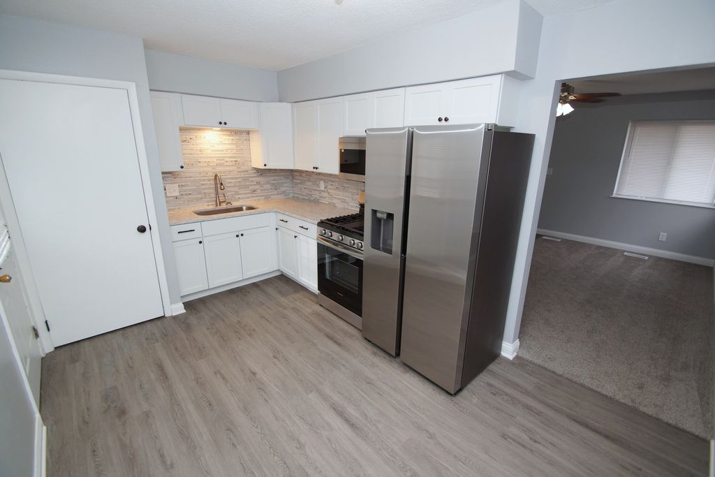 Davenport Iowa Real Estate For Sale! This Raised Ranch Has a FRESH Look Including All New Flooring Throughout, Fresh New Paint Throughout, New Light Fixtures, New Spacious Eat-In Kitchen - New Cabinets, New Quartz Countertop, New Farm Style Sink, New Tile Backsplash, New Refrigerator, New Microwave, New Range/Oven, New Luxury Vinyl Plank Floor, New Front Exterior Door, New Blinds, Newer Electrical Panel, 3 Bedrooms, 1 Full Bathroom (Room in Basement to Add Additional Bathroom if Needed), 1,236 Finished Square Feet, Huge Rec Room in Basement Leading to Walk-Out Basement & Oversized 24 x 12 One Car Garage, Large 14 x 10 Deck, Fenced Yard, 12 x 5 Front Porch, & Poured Foundation! Close to Shopping, Restaurants, Grocery, Schools, Golf Course, & More!