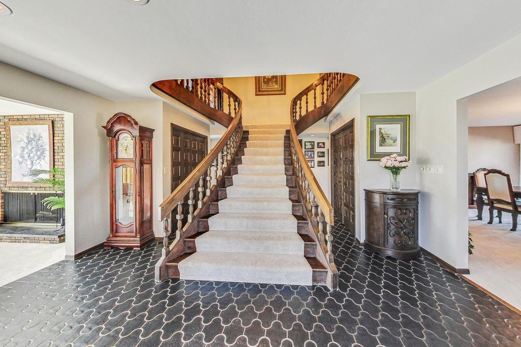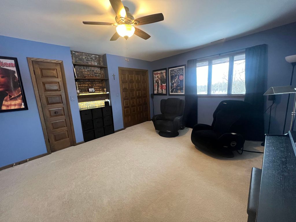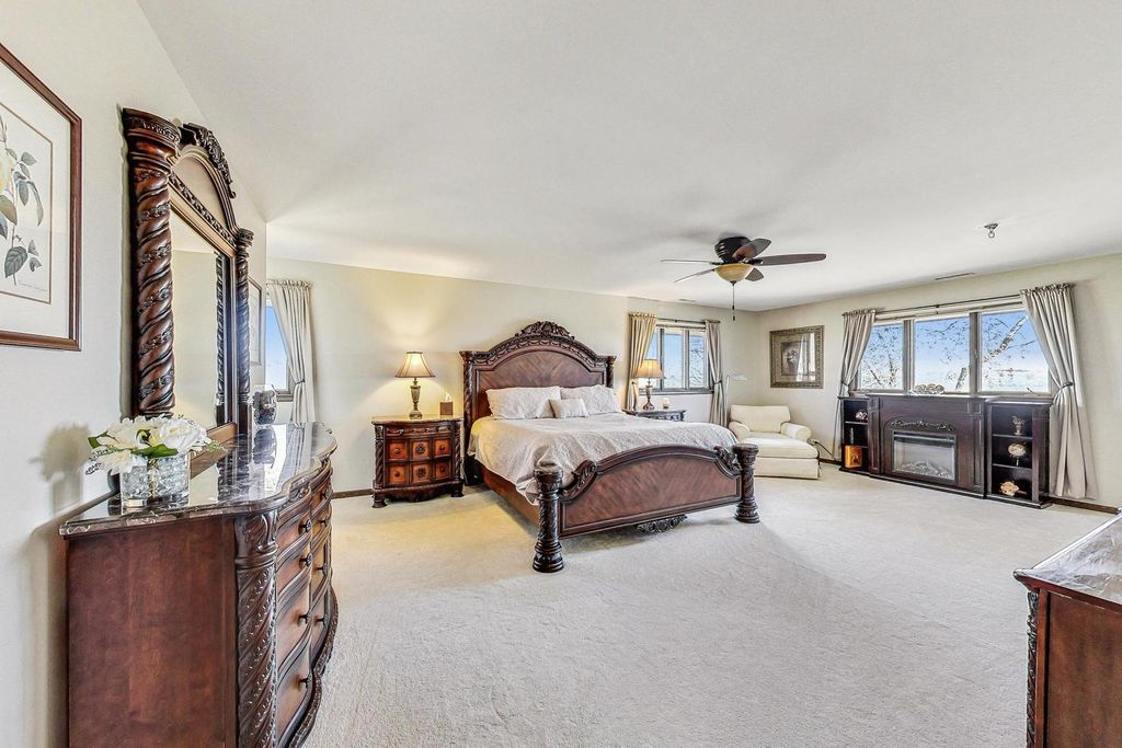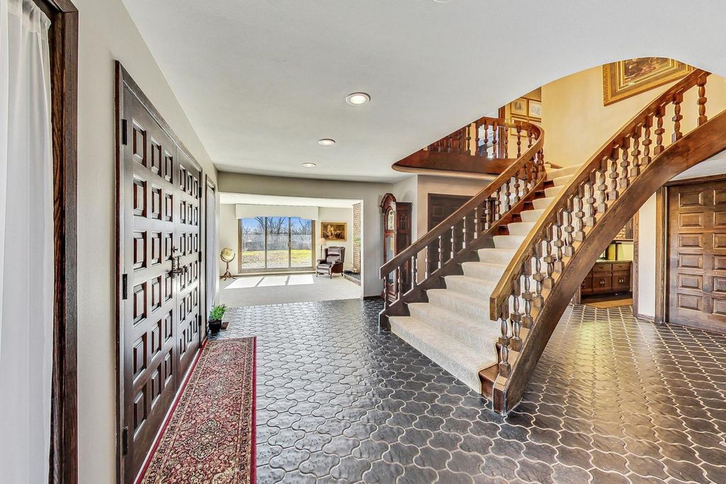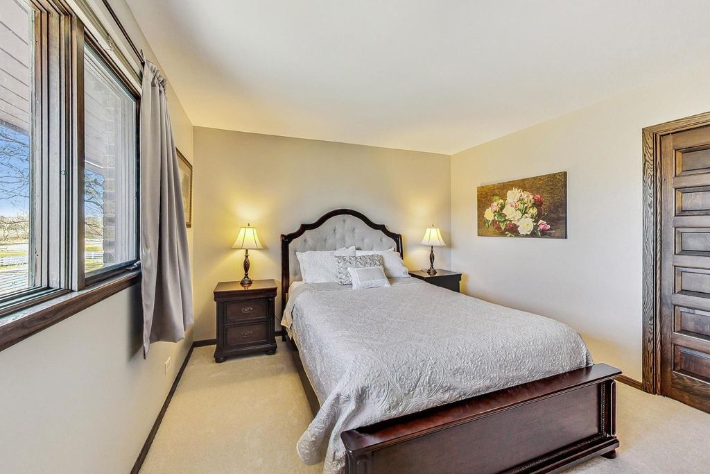 All brick beauty on private drive and high on a gentle rolling hilltop surrounded by Libertyville Township Open Space with sweeping views of Lake County Forest Preserve. This five bedroom custom home (with five bathrooms!) has all the space you need to live comfortably in the country yet be so close to all the essential conveniences in town. Enter and be greeted by the elegant staircase which fans out and welcomes you home. Off of the grand foyer is a large formal living room with brick fireplace. The kitchen has plenty of room for the cooking enthusiast along with lots of counterspace. The laundry room boasts a large space for all sorts of storage and can serve as your mudroom, too. The family room, which opens to a separate room featuring a wet bar, is where you'll be entertaining, with the floor to ceiling brick fireplace serving as the focal point. The large primary bedroom features an ensuite with large closets, tub with shower and dual sinks. Downstairs features a large recreation room with half bath and loads of storage. Step out to the generous patio space that is both private and serene. Septic Tank pumped June 2025, New roof full tear off 2016, New carpet and paint 2022, New Reverse Osmosis System under Kitchen Sink March 2025, New Water heater 80 gallon/ with heat pump Nov 2025, 2 New Mitsubishi Furnaces (located in basement for main floor) Nov 2025, 2 new AC units outside Nov 2025, 2 New Mitsubishi Thermostats located on main floor Nov 2025, 1 New Mr Cool Furnace/ ac unit for upstairs July 2024.