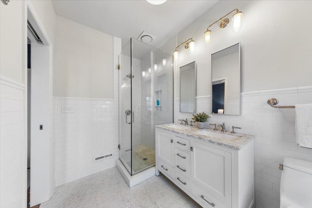Welcome to this beautifully updated historic row home in the heart of Lincoln Park. Perfectly situated on one of the neighborhood's most coveted tree-lined streets, this charming home greets you with a front brick patio ideal for morning coffee, barbecues, or evening entertaining. Inside, enjoy the convenience of full home automation, including lighting, window shades, surround sound, outdoor speakers, and an intercom system. The entryway features heated floors that lead to a cozy living room with a versatile back room ideal for a home office or recreation space, full bath, and a dedicated laundry room. The main level showcases a stunning chef's kitchen with triple-pane windows, custom cabinetry, Sub-Zero refrigerator, and Wolf range. The spacious island seats four and opens seamlessly to the inviting living area complete with a wood-burning fireplace, built-in shelving, east-facing windows, and a charming Juliet balcony that fills the home with natural light. The top floor offers three bedrooms, including a serene primary suite with a new ensuite bath (2021) and a walk-in closet. Two additional bedrooms overlook picturesque Bissell Street and the patio's beautiful magnolia tree and share a recently renovated (2023) full hall bath. Blending modern comforts with timeless 1870s character, this home truly has it all - thoughtful updates, beautiful finishes, and an unbeatable Lincoln Park location close to the best of shopping, dining, and transit.