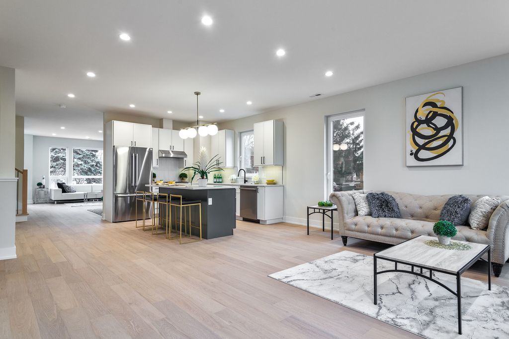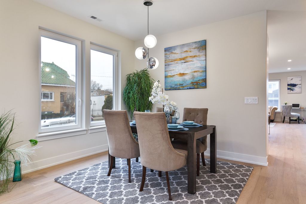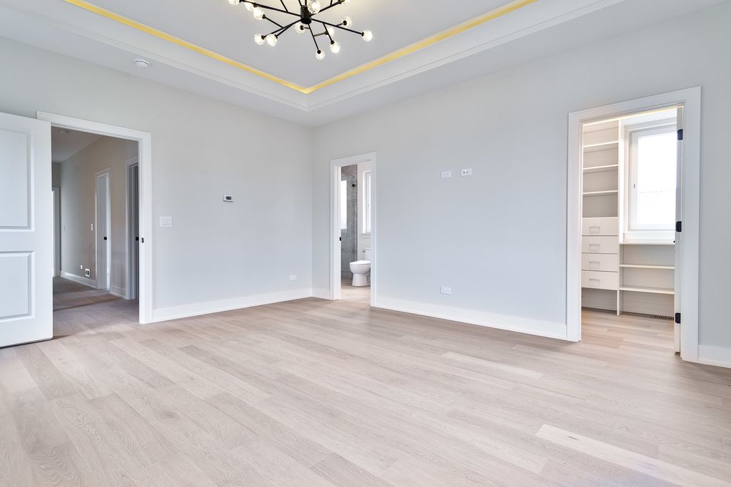 This stunning 5 Bedroom (3 Beds Up) 3.5 Bath New Construction single-family home/one of two built next to each other. The bright and open floor-plan showcases, expansive room sizes, extensive millwork and lofty ceiling heights. The custom built; eat-in kitchen was designed for day to day living and entertaining alike. The center island is enveloped by custom soft-close cabinetry, professional grade appliances and stunning tile work. The abundant interior living space is matched by spacious back yard and 2 car garage. The upper lvl provides 3 large bedrooms, 2 full baths. The primary bedroom features a dramatic walk-in closets with custom shelving and a serene primary bath with glass encased shower, stand-alone soaking tub, dual vanity and heated floors. The lower lvl includes two additional bedrooms and a sizable family room + excellent storage. One of two newly built, with the construction being just finished single family homes, where quality of craftsmanship and modern, elegant finishes are present! Open layout first floor with beautiful kitchen, powder room, living and dining room. The lowest level can be connected with the main level or closed and be used by an extended family. It offers two more bedrooms, full bath, family room with a bar/dinette. This house has it all, shows beautifully and is ready for you to move in.