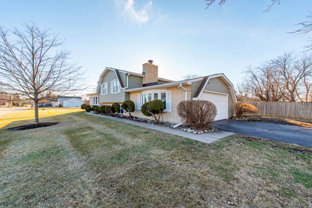 Discover the perfect blend of space, convenience, and charm in this beautifully maintained tri-level home in North Chicago, ideally situated on a desirable corner lot near Foss Park Golf Course. Step inside to soaring vaulted ceilings that enhance the bright and open living and dining rooms, creating an inviting atmosphere for everyday living and entertaining. The eat-in kitchen is thoughtfully designed with quality black appliances, including a newer dishwasher and stove, and features sliding doors that lead to a private deck-perfect for relaxing or enjoying outdoor gatherings. Upstairs, you'll find three generously sized bedrooms. The primary bedroom offers walk-through closets with direct access to a shared bath featuring dual sinks. The lower-level family room provides a cozy retreat with a wood-burning fireplace, a convenient half bath, and a large, separate laundry room. Continue downstairs to the finished sub-basement showcasing new tile flooring, a tastefully designed bar area, and a cedarwood closet-ideal for entertaining or additional living space. This home offers peace of mind with numerous recent updates, including a new furnace with humidifier and air filtration system (2021), hot water heater (2020), newer roof and siding (2021), and washer and dryer (2024). An oversized two-car garage adds even more convenience and storage. A truly well-cared-for home in a fantastic location-this one is not to be missed.