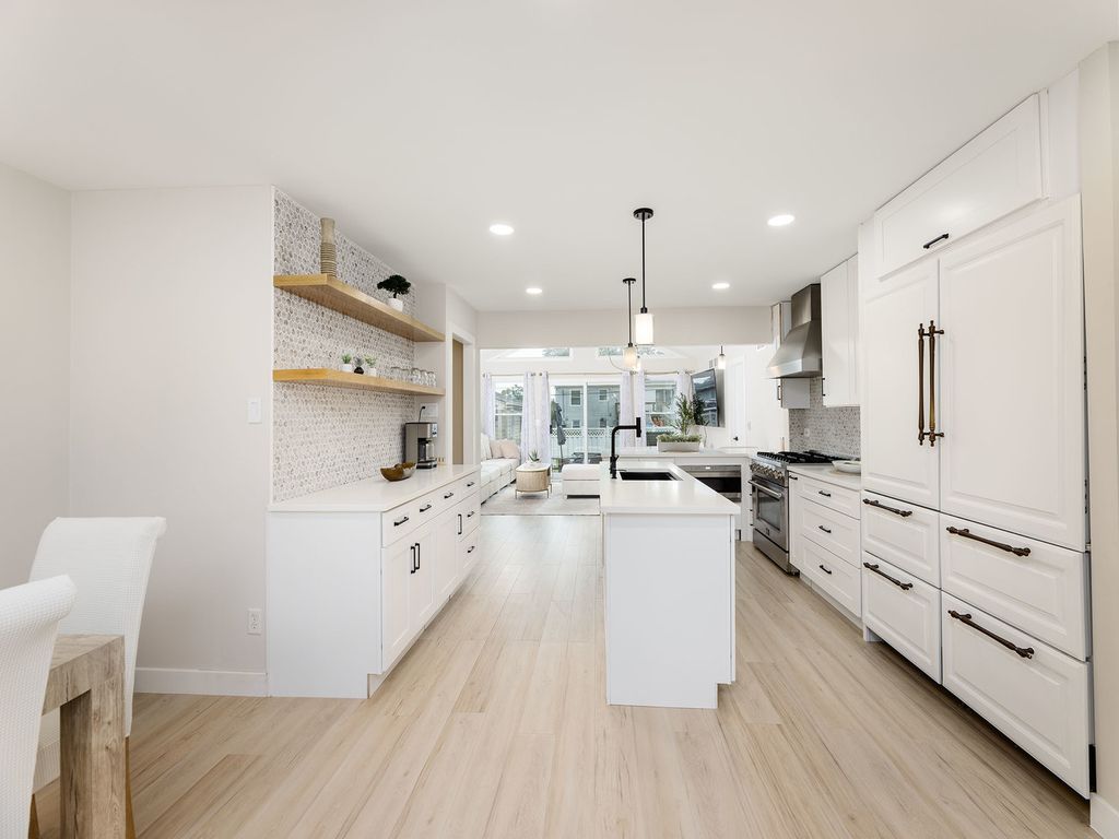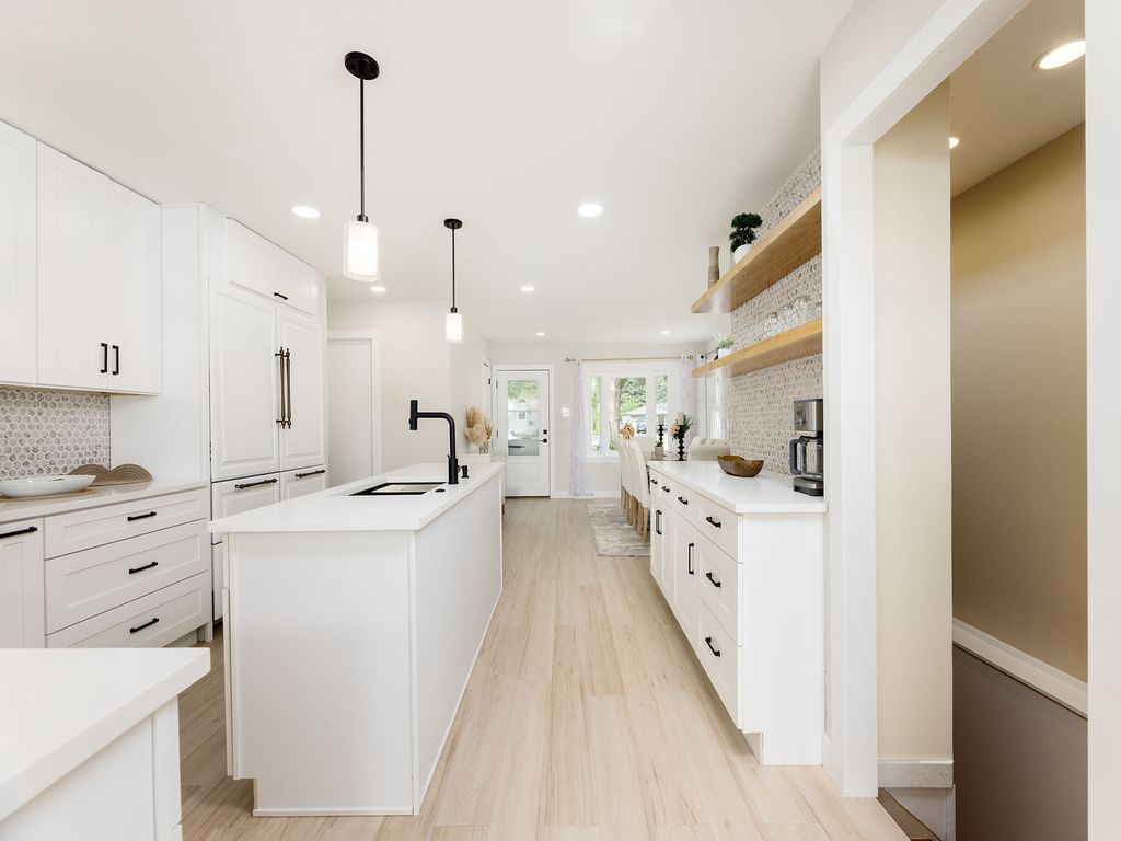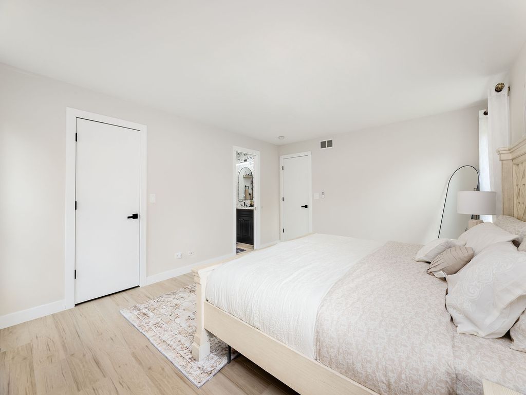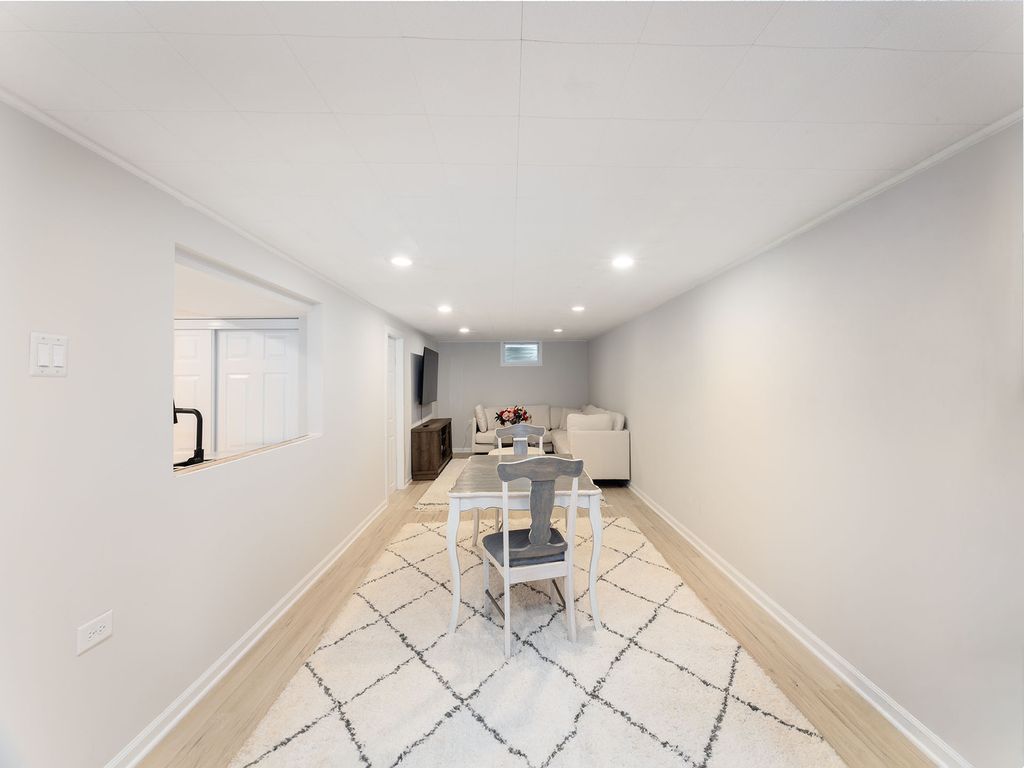 This sprawling ranch looks small from the outside but it is very spacious on the inside! It features an intelligently designed floor plan with 4 bedrooms on the main floor, a fifth bedroom in the basement and 2.5 bathrooms! Walk into a dining room, kitchen and family room, and notice how it feels upon your entrance: open, airy and bright! Crisp, natural sunlight beams into this home from the family room windows and skylights. Just watch: as the sun lights up your home, and your heart! The dining room area comfortably seats eight people and it opens up to a masterfully designed kitchen featuring white shaker style cabinets along with a Sub-Zero refrigerator, a Wolf microwave, a Forno stove and a Forno hood, and a tastefully selected quartz countertop! Hang out with your family and friends around the kitchen peninsula and the kitchen island and: eat, drink, chat and laugh. Then, be wowed: by the family room! It is accentuated with a large, vaulted ceiling featuring skylights, recessed lighting and so many windows. It is like a little piece of heaven. This family room has enough space for a large sectional, an ottoman and an entertainment area. There is also a sliding glass door that leads to a beautifully bricked paved patio and a large yard! It is a perfect space for entertaining and relaxing. More so, there are four bedrooms on the first floor. Three of the bedrooms are on the north side of the home, or just to the right of the front entrance. These three bedrooms share a full bathroom as well. The fourth bedroom is a true primary bedroom and it is located at the opposite end of this home, which adds privacy to this space; it features a full, primary master bathroom with a jacuzzi, a pretty double vanity and tastefully curated wallpaper! You will love it! But, wait. There is more! Head down to a full, finished basement featuring luxury vinyl flooring, a small, quasi-kitchen area, a bathroom, a stackable washer-and-dryer and an additional bonus bedroom, which can also be used as an office, a recreational room, an exercise room or a playroom for kids! This home also features window well drains, a sump pump, a battery back-up system and a huge 4-foot crawl space in the basement, which is just underneath the family room! This home is within walking distance to the park, Metra, schools, shopping and restaurants! Easy to show. A 10!