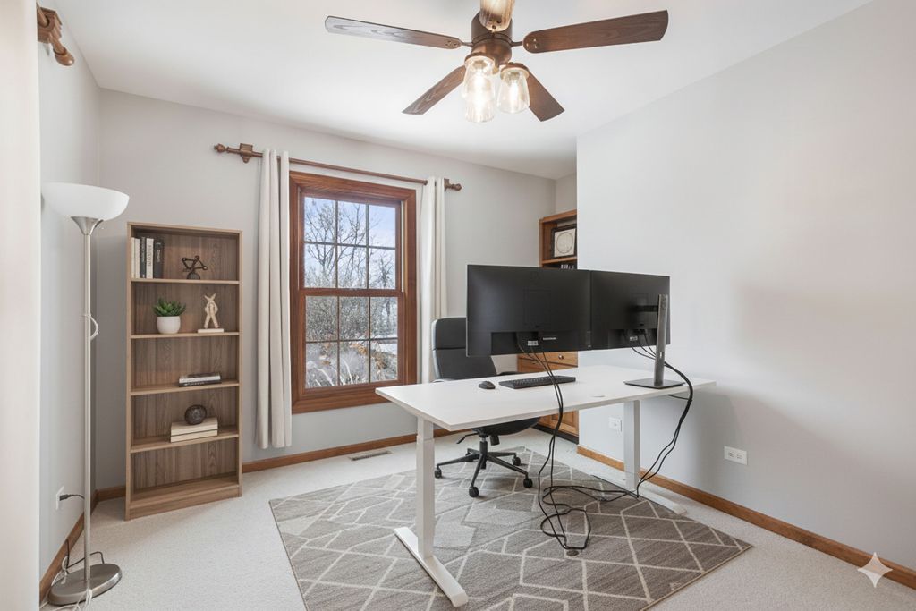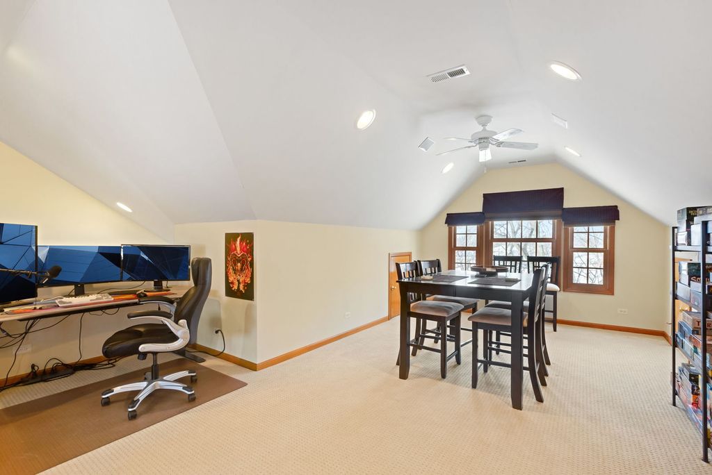 Sitting on just under an acre in the desirable Turnberry neighborhood, this home offers five bedrooms, two full bathrooms, two half bathrooms, along with abundant storage and flexible living space. The main level includes a dedicated office space, and a kitchen that truly functions as the heart of the home- featuring an oversized island, granite countertops, double oven, and plenty of room to cook, connect, and entertain. Hardwood floors run through much of the first floor. Upstairs, the primary suite has been recently improved with a newly redone shower, and a new AC Unit was installed in 2025. Major updates include a huge deck that was done in 2024, Roof that was done in 2022, and water heater done in 2021. The heated three car garage offers additional storage, and the backyard provides privacy, mature trees, and open space to enjoy. Conveniently located near Route 47, Randall Road, shopping, dining, and Crystal Lake Schools. Ready for its next owner to make it their own.
