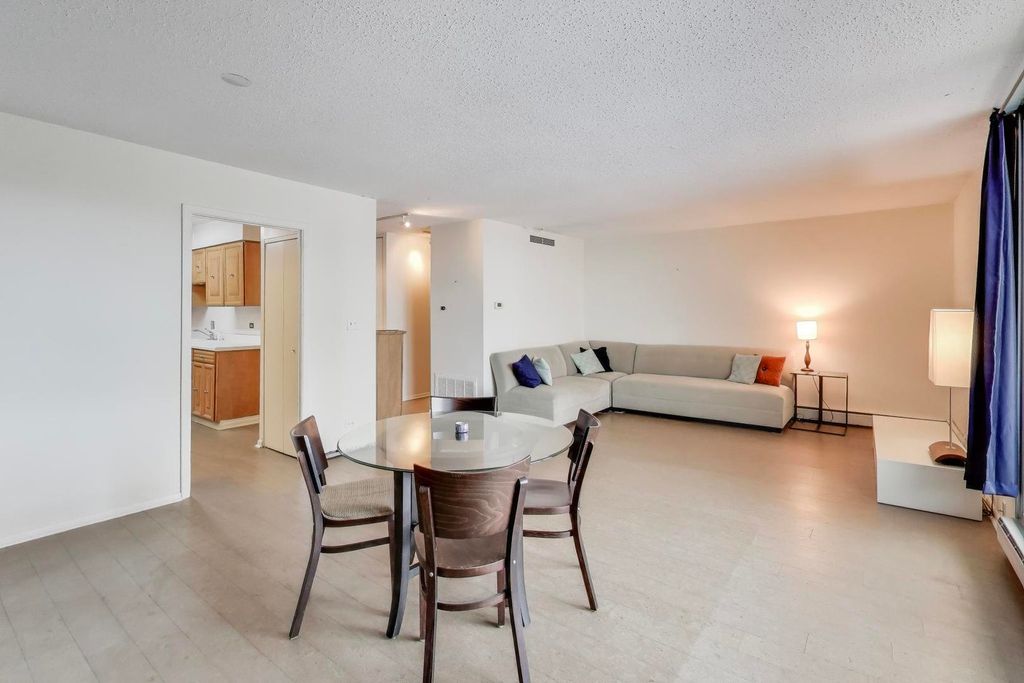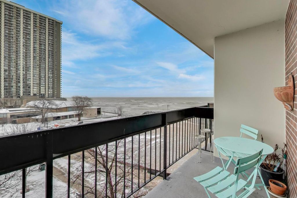 Experience the tranquility of lakeside living in this expansive and light-filled Edgewater residence at Thorndale Beach North. Sweeping north and west exposures showcase unobstructed views of Lane Beach and Lake Michigan. A gracious foyer opens to a wide, open-concept living and dining area, providing flexibility for everyday living, entertaining, or simply unwinding while taking in the lakefront scenery. The well-cared-for galley kitchen offers abundant cabinetry, generous counter space, a pantry closet, and a charming eat-in breakfast area. The floor plan is configured into a spacious two-bedroom layout with a versatile guest bed office nook. Featuring a serene primary suite complete with a full ensuite bath, large double closet, and direct balcony access. Storage is plentiful throughout the unit, including multiple closets, convenient balcony storage, and a dedicated storage cage in the building. Other highlights: cork flooring, individually controlled heat and air conditioning, and preserved vintage details throughout, adding character and comfort. Residents enjoy full-service building amenities such as 24-hour door staff, an outdoor pool with sundeck, party room, bike room, laundry facilities, on-site management and maintenance, and INCLUDED GARAGE PARKING. Perfectly positioned along the lakefront with immediate access to beach, park, playground, Lake Shore Drive, the Thorndale Red Line, Whole Foods, Loyola University, and the vibrant Edgewater neighborhood, this home seamlessly combines space, views, and unmatched convenience.