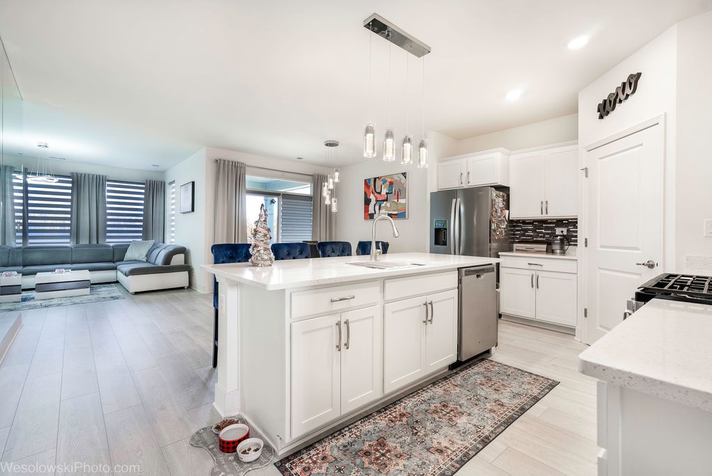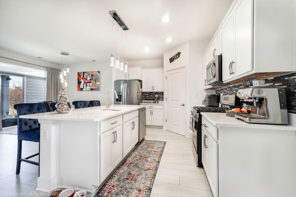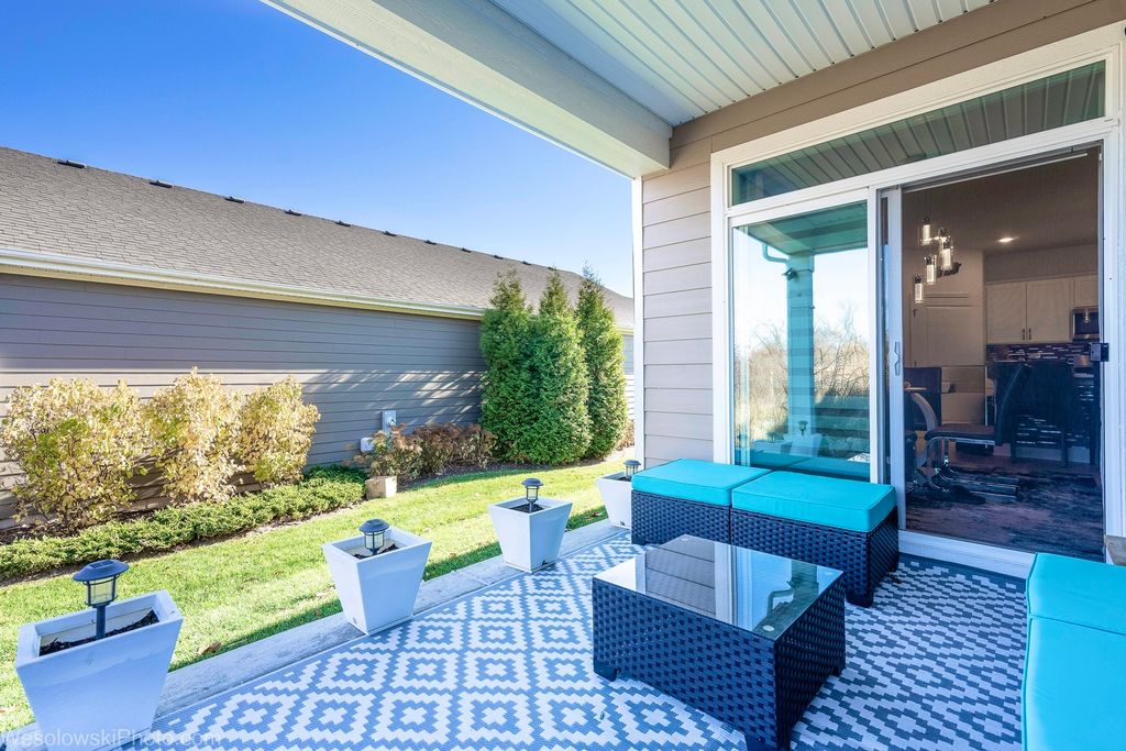 Better than brand new ranch (2022) at beautiful Sanctuary of Bull Valley. Move-in ready! This great Arlington ranch includes 3 bedrooms, 2 full baths, and a 2 car garage. Open kitchen offers quartz countertops, crown molding, large island, and a spacious walk in pantry, making this the perfect space for entertaining and gatherings. Stainless steel appliances include an oven/range, refrigerator, microwave, dishwasher, and disposal. The large laundry room washer, dryer and laundry tub. The primary bedroom suite has a large walk in closet, linen closet, raised double bowl vanity, and a walk-in shower with sliding glass doors. Low maintenance living - HOA includes grass cutting and snow removal. Located near historic Woodstock Town Square, Metra station, shopping and dining, community adjacent to the Bull Valley Golf Club. There is still 7 years warranty for major structural defects, offering peace of mind for new homeowners. Since new the owner has invested over $40,000 in a new laminate floors, wall mirrors, water softener, ceiling lighting (island-dining-living room). The owner will leave all almost brand new European style furniture with 3 large TVs. There is also ADT home-smart system with front, rear, and doorbell cameras. This home will work with Bluetooth, Wi-Fi, Z-Wave and any other cellular device so the owner could sync with almost any other smart device.
