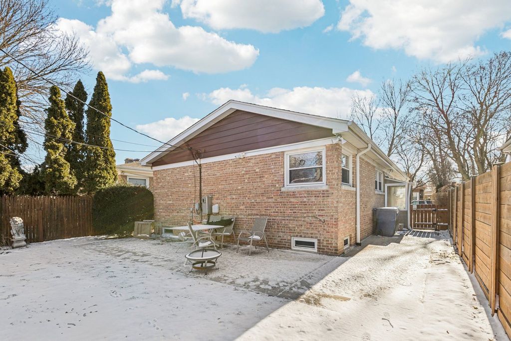 Mid-Century Modern ranch, built in 1954, featuring vaulted ceilings in the living and dining rooms and an abundance of natural light from large, newer windows throughout. The airy, open living spaces create an inviting atmosphere for everyday living and entertaining. The eat-in kitchen offers comfortable space for casual meals. The primary bedroom includes an updated ensuite bath with a walk-in shower, complemented by two additional bedrooms and a full hall bath.The lower level expands the living space with a generous game and media room, a full bath, and additional finished space with new vinyl flooring, a laundry area, and a versatile bonus room-ideal for a home office, gym, or guest space. Side drive provides convenient parking, and the fenced backyard offers privacy and room to relax or play.Ideally located on a wonderful Evanston block, close to schools, shopping, and everyday conveniences. This is an estate and is sold "AS-IS".