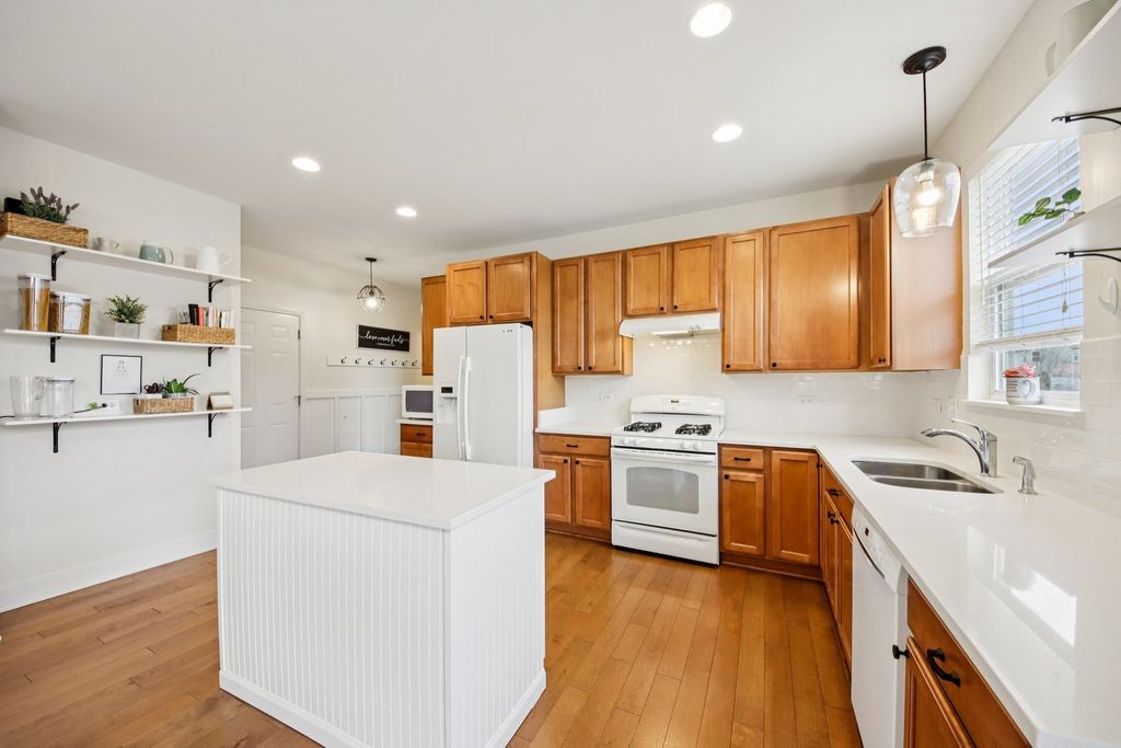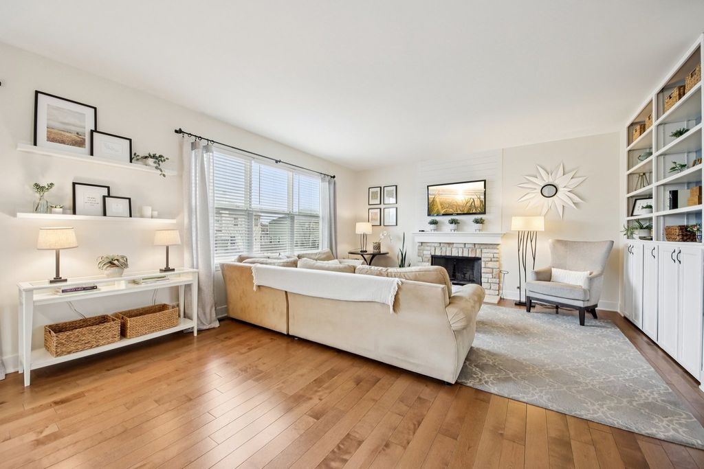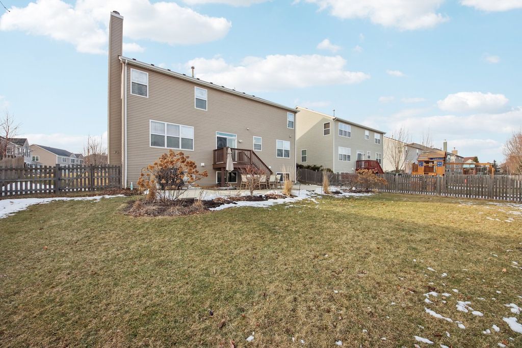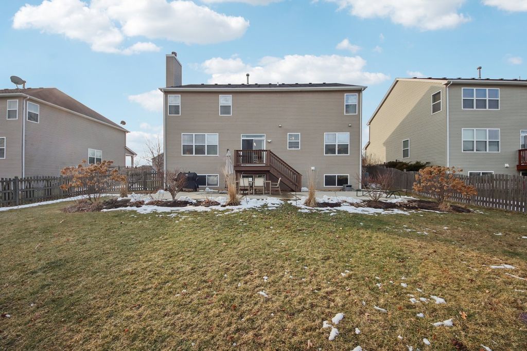 Welcome to Liberty Lakes East! This stunning and beautifully maintained home offers four bedrooms and 2.5 bathrooms. The main floor features warm family room with built in shelves (2018) & a fireplace that flows seamlessly into the eating area and kitchen. The kitchen showcases two-tone cabinetry, an island with breakfast bar, updated counters (2022), a newer dishwasher (2019), and generous prep space-perfect for everyday living and entertaining. A formal living and dining room combination is perfect for entertaining while the private main-floor office and half bath provide ideal work-from-home convenience. Upstairs, you'll find four spacious bedrooms plus an oversized loft that serves perfectly as a second family room, play space, or media area. The primary suite features two walk-in closets and a massive ensuite bath for a true retreat experience. The second floor laundry room has a new washer (2026) and plenty of additional storage space. Enjoy outdoor living with a large concrete patio (2022), refinished wood deck (2025), and beautiful landscaping-ideal for gatherings or peaceful evenings at home. The unfinished lookout basement offers incredible potential for future living space. A 3-car garage includes a dedicated "mancave" or hobby area for added flexibility. Additional updates a new water heater (2022) and hardwood floors (2020). Located in a park-filled, nature-rich neighborhood close to forest preserves, trails, schools, shopping, and dining - This is the perfect place to start your next chapter.