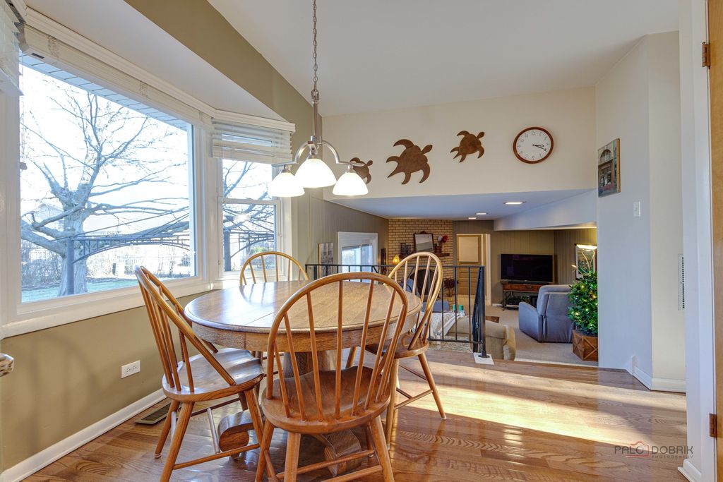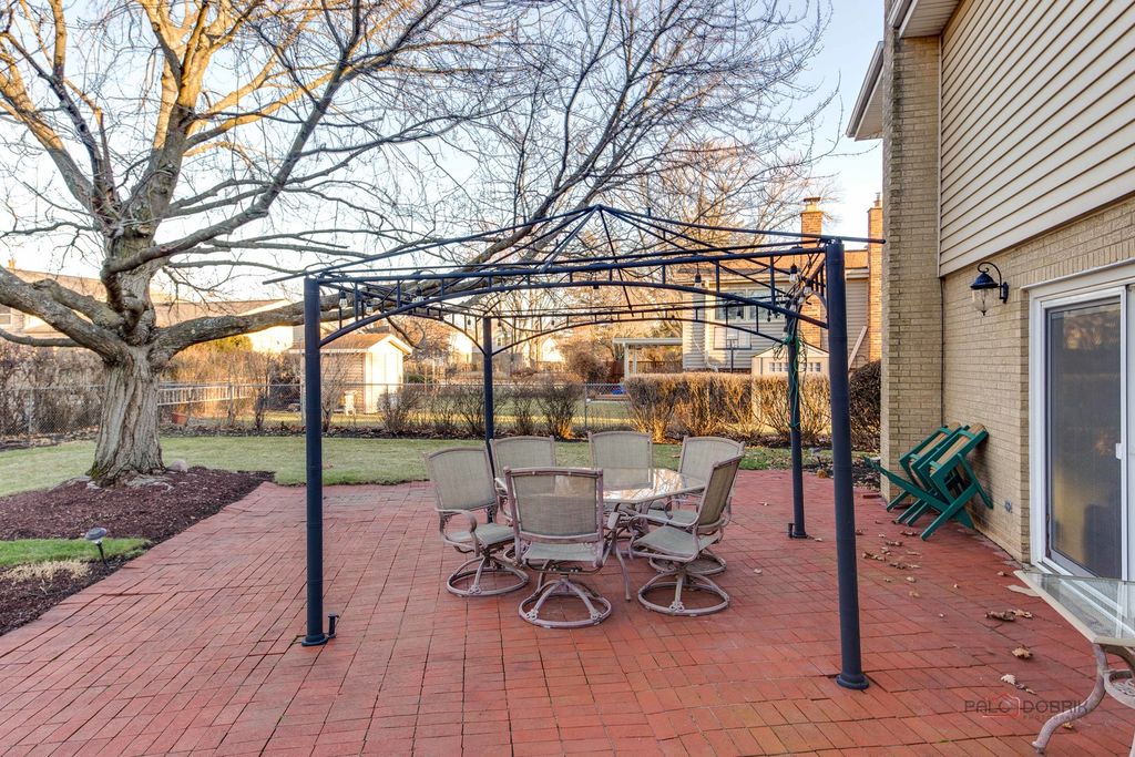 Well-maintained and move-in ready, this sunny 3-bedroom, 2.1-bath split-level home in Arlington Heights offers comfortable living and a functional layout in a convenient location. Bright living and dining rooms welcome you with abundant natural light. The kitchen features granite countertops, ample cabinet storage, and a sunny eating area that overlooks the family room. The lower-level family room is perfect for relaxing or entertaining, complete with a charming brick fireplace and dry bar, and provides walkout access to a brick paver patio. Upstairs, the spacious primary suite includes a private bath with double sink vanity and shower, while two additional bedrooms share a full hall bath, which has a double sink vanity. An unfinished basement offers great storage or future expansion potential. Enjoy the large, open yard and a fantastic location close to Arlington Heights, Wheeling, and Buffalo Grove shopping, dining, and more.