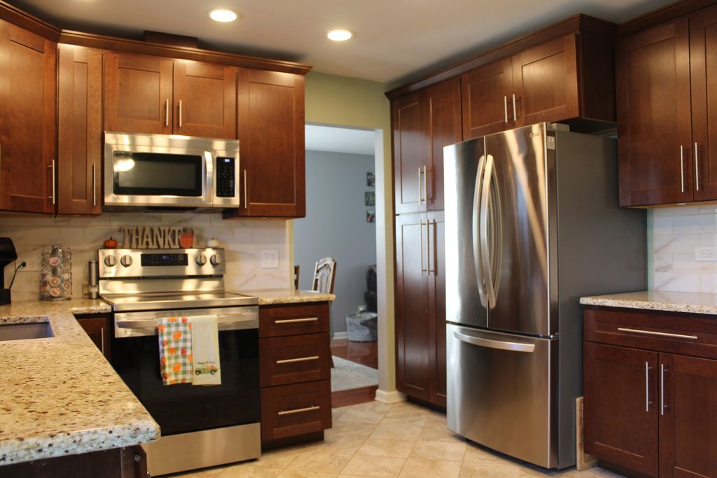 Well maintained 4 bed 3 bath home, with over 2400sq. ft. of living space. Featuring updated eat in kitchen, with shaker style soft close cabinets, stainless steel appliances, granite countertops, and custom pantry. Updated baths including Master Suite private FULL bath. Fresh paint and carpet, heated garage with plenty of workshop storage and space, plus newer furnace and ac. Possible related living w/lower level 4th Bedroom next to bath and family room. Finished basement with wet bar and pool table for all of your entertaining needs! Spacious back yard. Move-in ready, waiting for you to unpack and relax! Home Warranty provided with a qualifying offer. **Agent Owned**