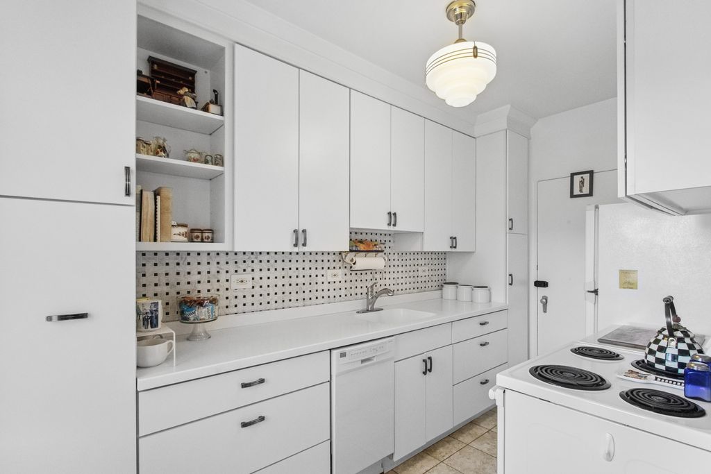 One of the largest one-bedroom layouts in the building, this thoughtfully customized condo offers generous living space, abundant natural light, and timeless Art Deco character. With windows on two sides, hardwood parquet floors throughout, and gorgeous courtyard & fountain views, the home is open, bright, and inviting. Custom wood doors with reeded glass inserts, restored original radiator covers, & custom lighting fixtures reflect the high level of detail found throughout. This is a non-cookie-cutter home full of personality, located in one of the neighborhood's most attractive Art Deco buildings. Individual elevators open to a small, private vestibule with only a few units per floor. The expansive living room easily accommodates substantial furniture and offers flexible space for both entertaining and everyday living. A separate dining room provides ample room for a full dining setup and a dedicated home office, making the layout both functional and versatile. The fully renovated kitchen features custom 42-inch wood cabinetry with pull-out storage, open shelving, a detailed designer backsplash, and carefully selected white appliances, including a dishwasher. An Art Deco lighting fixture adds a polished, distinctive touch. The oversized bedroom comfortably fits a king-size bed and features custom closet doors with plenty of room for dressers. The beautifully renovated bathroom was designed by a master tiler in keeping with the building's Art Deco style and includes custom tilework to the ceiling, a custom sink and vanity, built-in shelving, custom wall sconces, and a seamless glass shower door. Ideally located next to Lincoln Park with easy access to Lake Shore Drive, Montrose Beach, bike paths, and the bird sanctuary. Just steps from restaurants, cafes, grocery stores, and the vibrant Argyle Street corridor. Wait list for on-site parking. Off site parking available