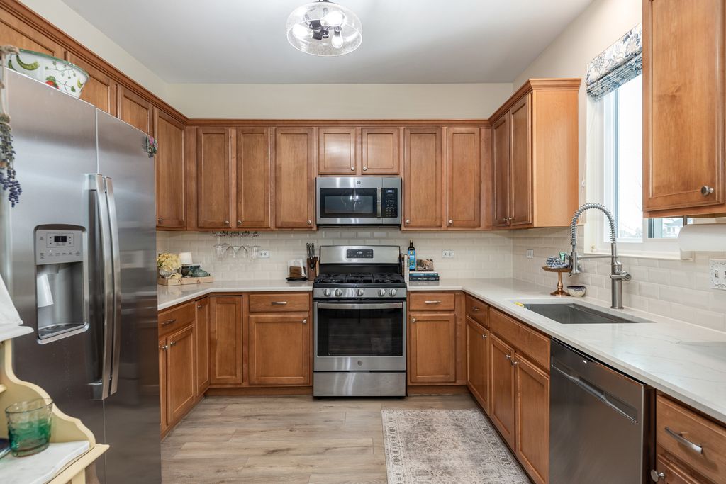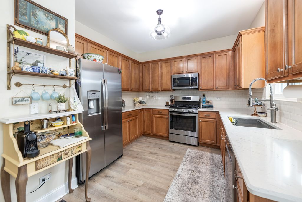 Beautifully Updated Duplex with Extensive Recent Improvements! This meticulously maintained duplex offers modern updates, quality finishes, and peace of mind with major system upgrades already completed. The home features brand new vinyl plank flooring thoughout, extensive molding throughout complemented by stylish 5-inch baseboards creating a cohesive and contemporary look in every room. The kitchen is functional and elegant, showcasing quartz countertops and a classic subway tile backsplash-perfect for everyday living and entertaining. Both bathrooms have been renovated, including a guest bath updated in 2024 and a stunning primary bath renovation completed in 2025. Additional recent upgrades include a fully renovated laundry room, fresh interior paint throughout-including basement ceilings and walls. Comfort and efficiency are prioritized with a new furnace (2021), new air conditioner (2022), a new auxiliary hot water tank, and radon mitigation. Major structural improvements include new roof (2023), all new triple-pane windows, a new patio sliding door, and a sump pump with backup battery ejector for added protection. This duplex is truly move-in ready!!