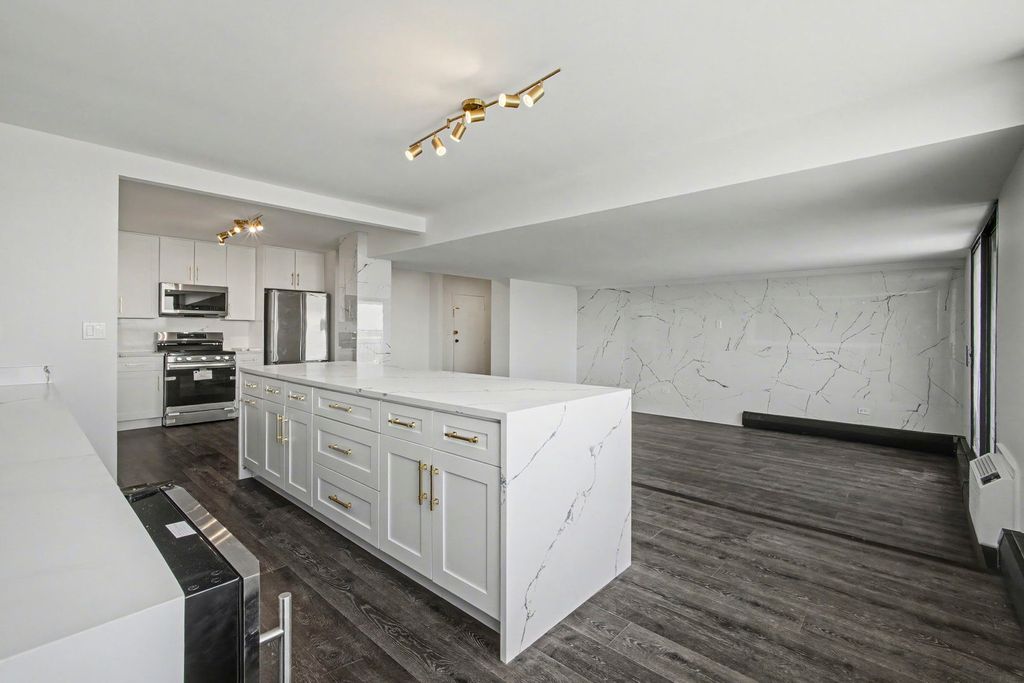 Discover effortless style and modern comfort in this completely remodeled, stunning one-bedroom condo - a perfect blend of sophistication and convenience. Step inside to an open, light-filled living space showcasing high-end finishes and designer lighting throughout. The brand new kitchen is a showstopper, featuring custom cabinetry, sleek countertops and stainless steel appliances, ideal for both everyday living and entertaining. The spacious bedroom offers a peaceful retreat with ample closet space. The fully renovated bathroom boasts contemporary tile and modern fixtures. Every inch of this home has been thoughtfully updated, from new flooring to paint, delivering true move-in ready living.