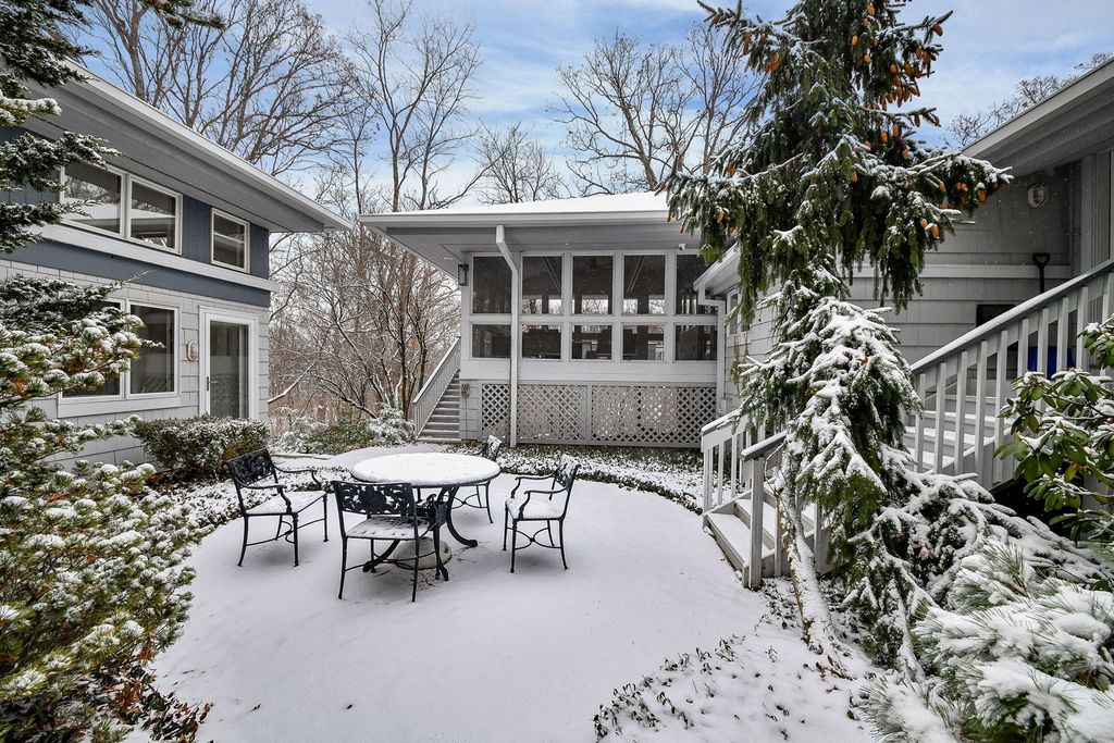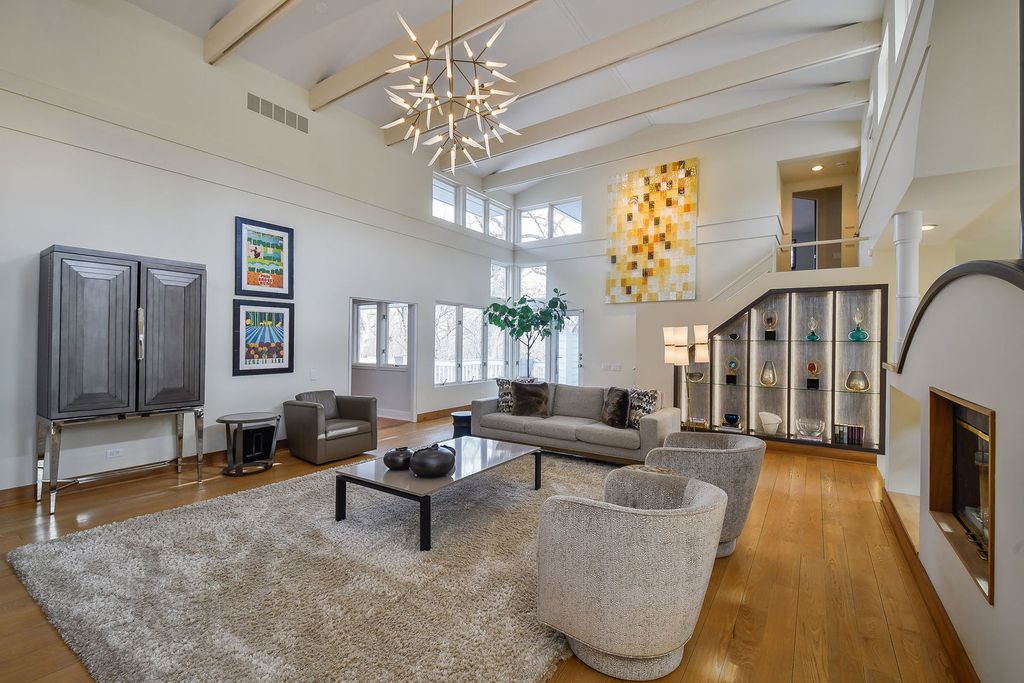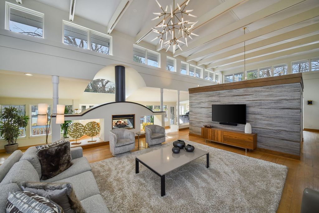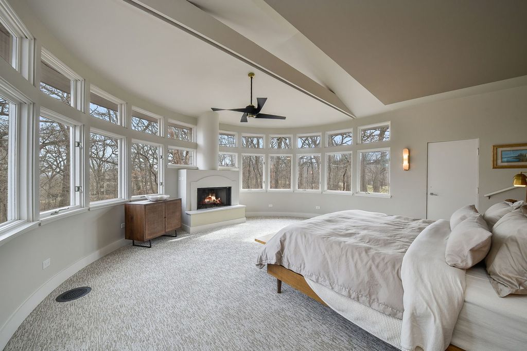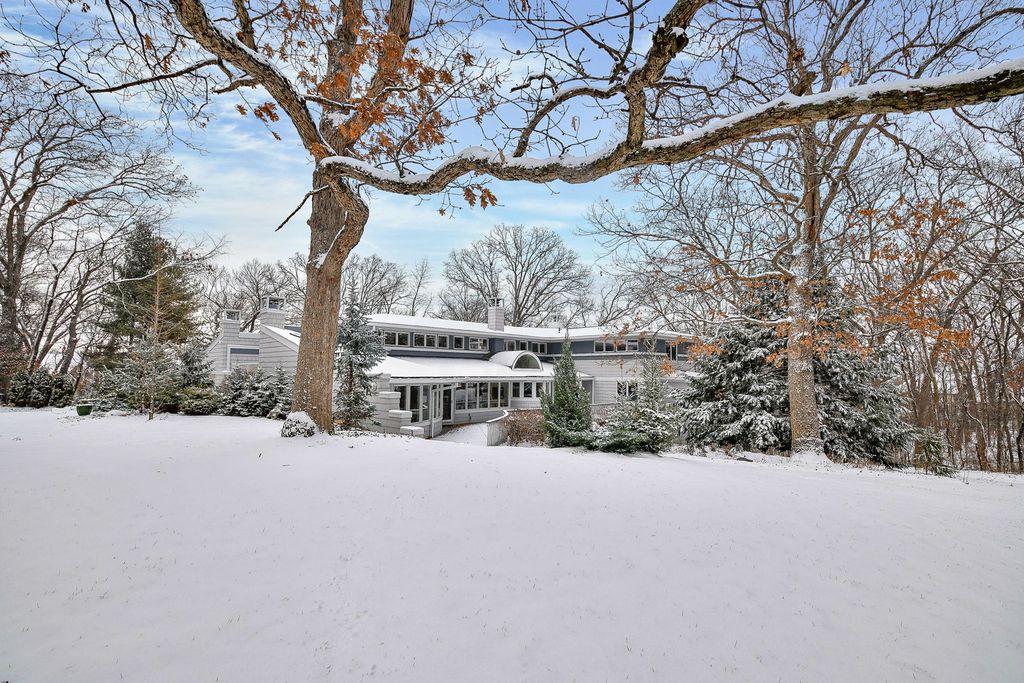 Set at the end of a quiet street and surrounded by 6.81 acres of lush, wooded landscape, this extraordinary 5,000+ square foot soft contemporary residence is a true architectural statement-designed to bring the outdoors in and elevate everyday living. From the moment you arrive, the home's design and layout make a lasting impression. Soaring beamed ceilings and expansive walls of windows create an impressive sense of scale, filling every room with natural light and offering breathtaking views of the surrounding forest. The family and dining rooms feature striking two-story ceilings, while the living room showcases dramatic 15-foot vaulted ceilings, enhancing the home's airy, gallery-like feel. Beautiful updated lighting and refined design details are displayed throughout, seamlessly blending modern sophistication with warm comfort. The main-floor primary suite is a private retreat, thoughtfully designed as a step-down sanctuary with 12-foot ceilings and a fireplace, while curved walls of windows frame tranquil woodland views. Adjacent to the suite is a flexible fourth bedroom-ideal as a nursery, office, or sitting room-offering exceptional versatility. The second and third bedrooms are spacious ensuites, each with its own full bath, providing privacy and comfort for family and guests alike. At the heart of the home, the expansive kitchen impresses with rich cherry cabinetry, quartz countertops, and high-end stainless-steel appliances. A large center island comfortably seats five, making it the perfect gathering spot. A butler's pantry provides additional storage and prep space, while easy access to the screened-in porch extends entertaining opportunities outdoors. Beyond the main residence, the property continues to impress. A private guest house offers a great room, kitchenette, bedroom with private bath, and an upper loft-ideal for extended stays, multigenerational living, or creative pursuits. The separate pool house is equally well-appointed, complete with its own fireplace, mini kitchen, and half bath, creating the ultimate setting for summer entertaining. Adjacent to the in-ground pool is a versatile sports court-perfect for tennis, shuffleboard, pickleball, or basketball-offering endless opportunities for recreation. The grounds provide both privacy and possibility, with mature trees and expansive acreage creating a rare sense of seclusion. For those seeking additional space, the 3,000+ square foot walk-out basement is ready for your finishing touches, presenting endless opportunities for customization. This one-of-a-kind estate masterfully combines architectural drama, thoughtful design, and resort-style amenities-all within a peaceful, wooded setting. St. Charles School District #303.