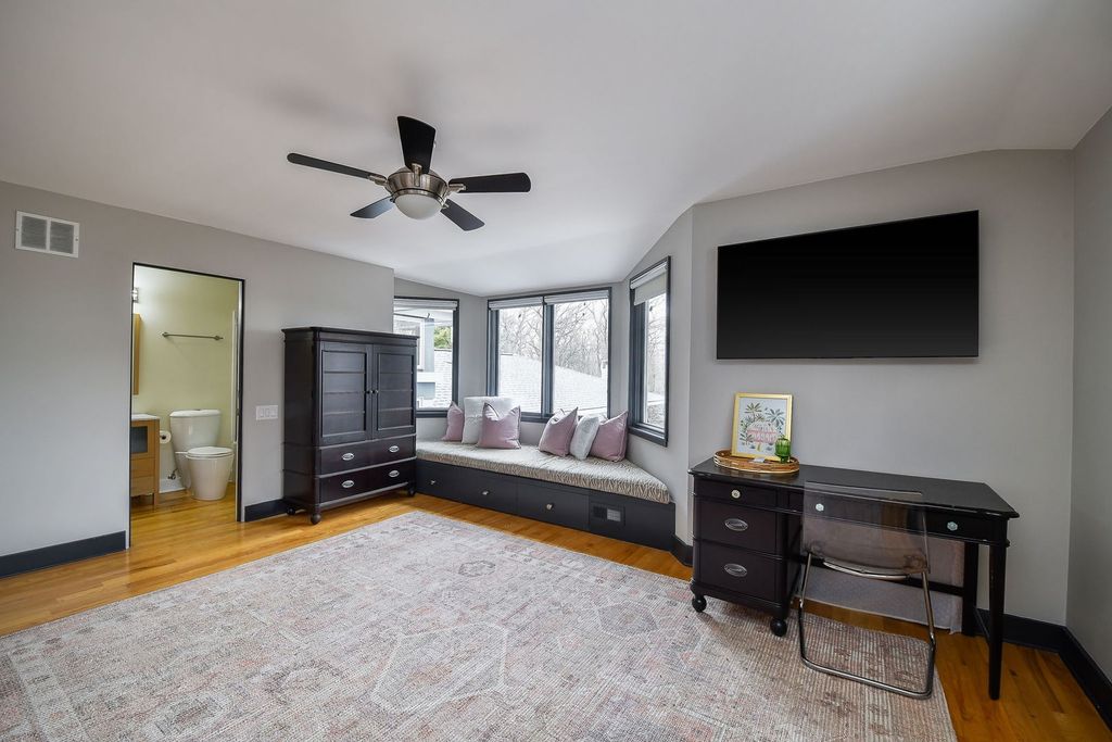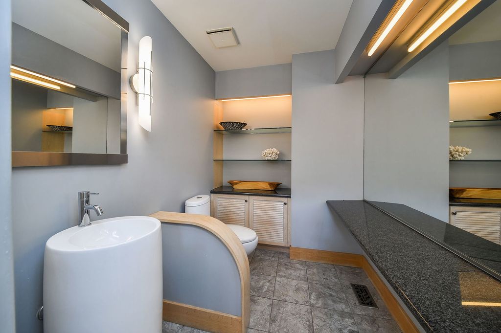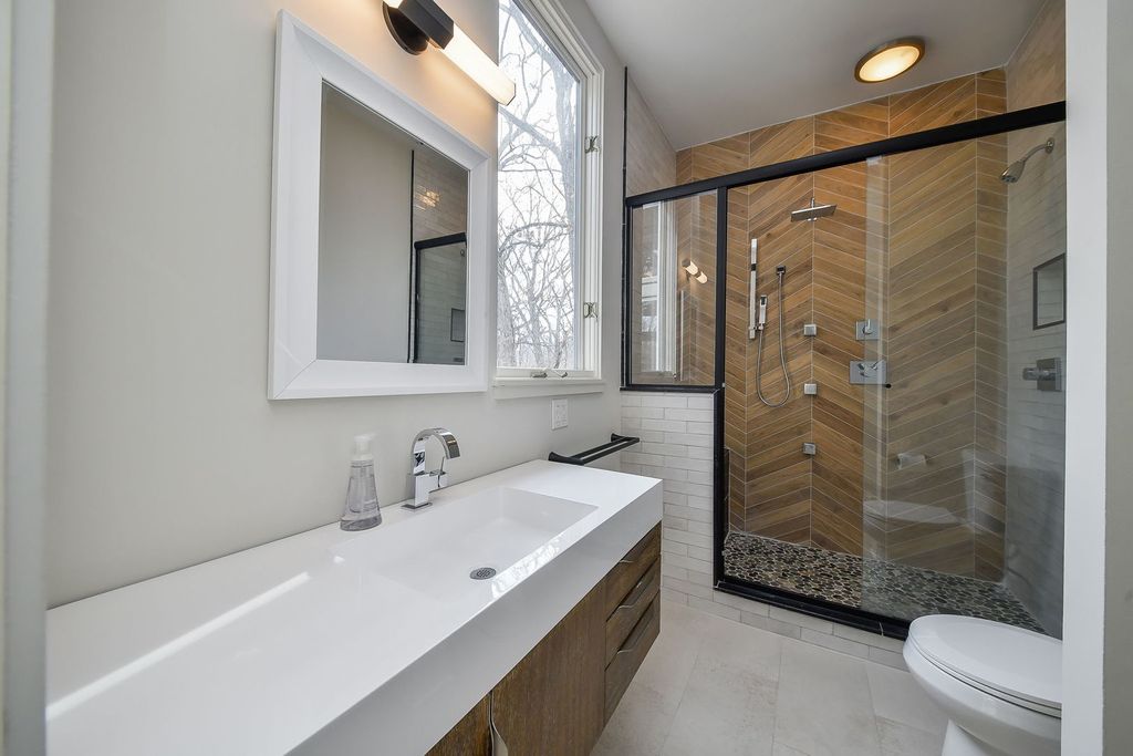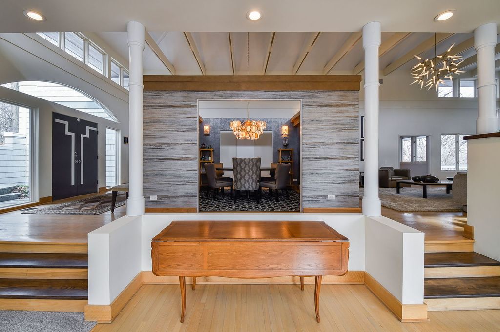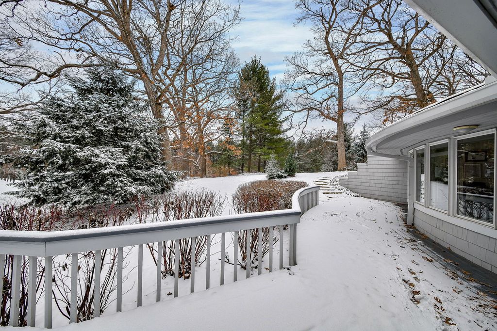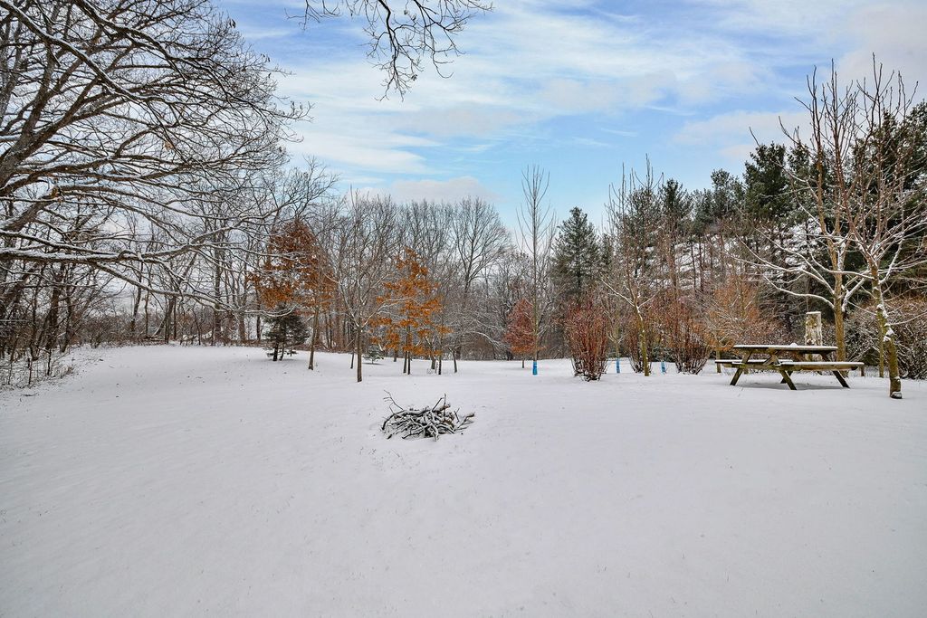 Set at the end of a quiet street and surrounded by 6.81 acres of lush, wooded landscape, this extraordinary 5,000+ square foot soft contemporary residence is a true architectural statement-designed to bring the outdoors in and elevate everyday living. From the moment you arrive, the home's design and layout make a lasting impression. Soaring beamed ceilings and expansive walls of windows create an impressive sense of scale, filling every room with natural light and offering breathtaking views of the surrounding forest. The family and dining rooms feature striking two-story ceilings, while the living room showcases dramatic 15-foot vaulted ceilings, enhancing the home's airy, gallery-like feel. Beautiful updated lighting and refined design details are displayed throughout, seamlessly blending modern sophistication with warm comfort. The main-floor primary suite is a private retreat, thoughtfully designed as a step-down sanctuary with 12-foot ceilings and a fireplace, while curved walls of windows frame tranquil woodland views. Adjacent to the suite is a flexible fourth bedroom-ideal as a nursery, office, or sitting room-offering exceptional versatility. The second and third bedrooms are spacious ensuites, each with its own full bath, providing privacy and comfort for family and guests alike. At the heart of the home, the expansive kitchen impresses with rich cherry cabinetry, quartz countertops, and high-end stainless-steel appliances. A large center island comfortably seats five, making it the perfect gathering spot. A butler's pantry provides additional storage and prep space, while easy access to the screened-in porch extends entertaining opportunities outdoors. Beyond the main residence, the property continues to impress. A private guest house offers a great room, kitchenette, bedroom with private bath, and an upper loft-ideal for extended stays, multigenerational living, or creative pursuits. The separate pool house is equally well-appointed, complete with its own fireplace, mini kitchen, and half bath, creating the ultimate setting for summer entertaining. Adjacent to the in-ground pool is a versatile sports court-perfect for tennis, shuffleboard, pickleball, or basketball-offering endless opportunities for recreation. The grounds provide both privacy and possibility, with mature trees and expansive acreage creating a rare sense of seclusion. For those seeking additional space, the 3,000+ square foot walk-out basement is ready for your finishing touches, presenting endless opportunities for customization. This one-of-a-kind estate masterfully combines architectural drama, thoughtful design, and resort-style amenities-all within a peaceful, wooded setting. St. Charles School District #303.