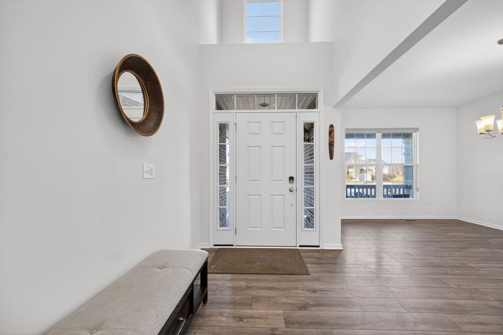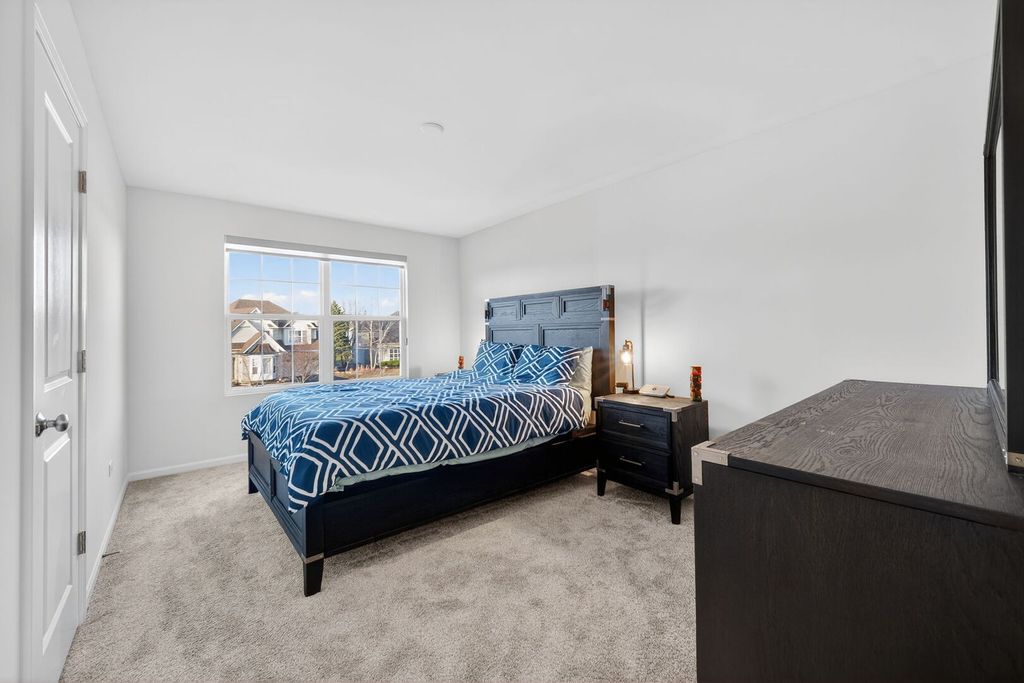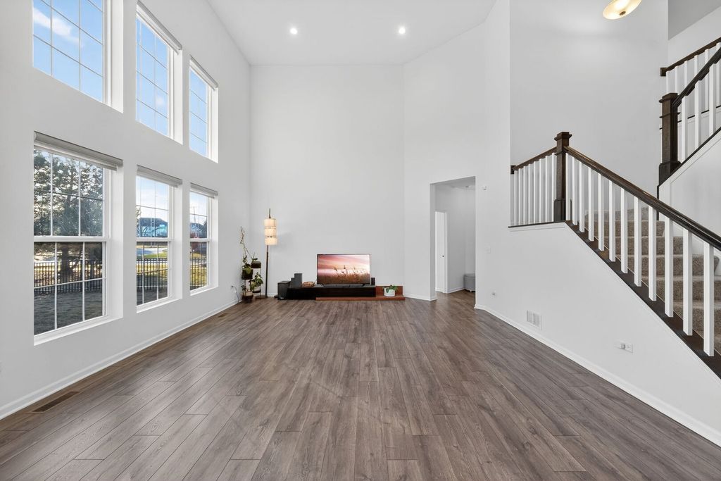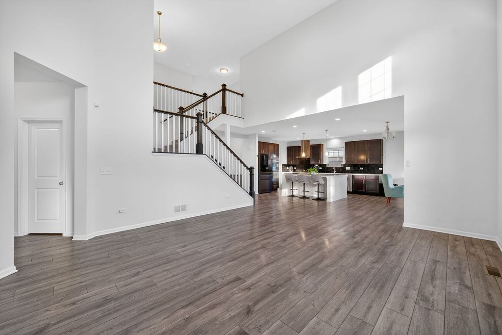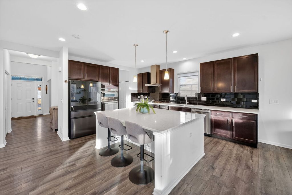 Experience elevated living in this impressive Hudson model by M/I Homes, offering 5 bedrooms and 3.1 bathrooms with a perfect blend of style, comfort, and smart-home features. Constructed in 2023, this residence feels brand new-without the construction wait time. The main floor welcomes you with durable prefinished wood laminate flooring, a hard-to-find main-level in-law bedroom with a private ensuite, and a striking two-story family room highlighted by 18-foot ceilings that create an open, sun-filled atmosphere. Designed for both everyday living and entertaining, the chef's kitchen showcases a massive upgraded 7.6' x 5.6' center island, Carrara Mist quartz countertops, upgraded cabinetry, kitchen backsplash, a walk-in pantry, and a Samsung Bespoke 4-door French-door refrigerator with Family Hub, along with Wi-Fi-enabled smart appliances including the refrigerator, dishwasher, and washing machine. Smart switches throughout the home enhance comfort and efficiency. The kitchen flows effortlessly into the breakfast area and family room, with an upgraded morning room just beyond-ideal for casual dining, relaxation, or supervising daily activities. Additional main-level spaces include a formal dining room, mudroom, and a charming covered front porch. Upstairs, the secluded owner's suite offers a peaceful retreat, complete with a fully upgraded primary bath featuring a large shower, soaking tub, private water closet, quartz vanity, and an expansive walk-in closet. Three additional bedrooms, a full hallway bath, and a convenient second-floor laundry room round out the upper level. All bathrooms are finished with quartz countertops for a modern, cohesive look. A full unfinished basement with rough-in plumbing for a future bathroom provides endless possibilities for customization. Additional enhancements include exterior fencing, professionally planted vegetation, and a whole-home Wi-Fi router system with signal enhancers for seamless connectivity throughout. Located in Plainfield and served by the highly acclaimed Oswego School District #308, this beautifully upgraded home delivers exceptional quality and design-a true standout.
