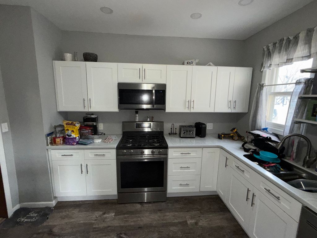 Completely remodeled 2 story home. 3 bedrooms, 1.5 bath, 3 car garage in great south side neighborhood. New roof on home and garage in 2020. Paint, flooring, kitchen, bathrooms, light fixtures and ceiling fans all new in 2021.