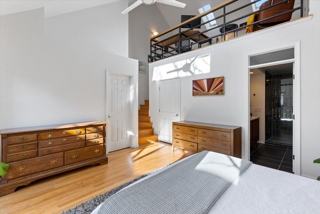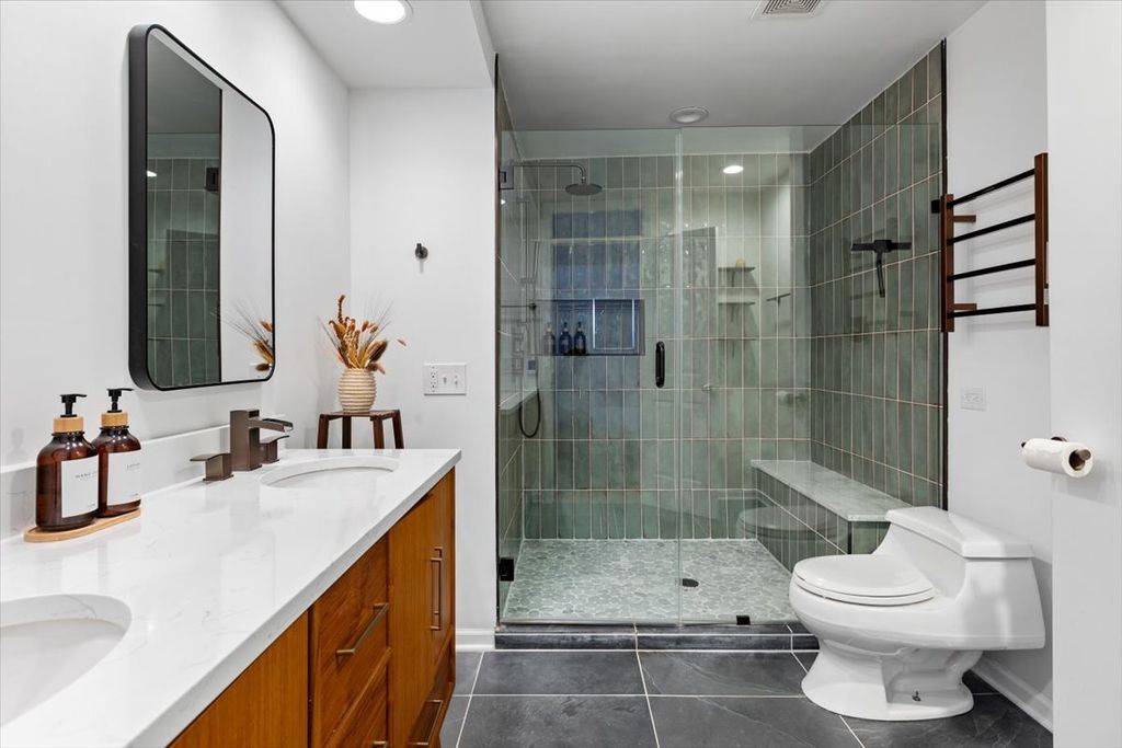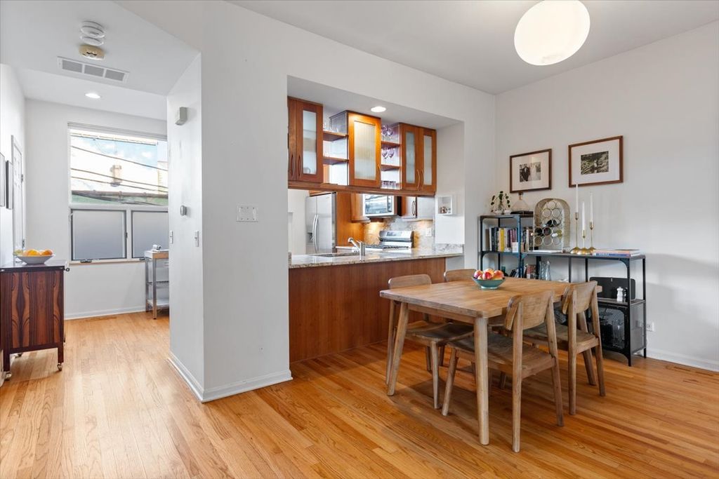 This thoughtfully designed 3 bed + den/2.5 bath townhome in prime Wicker Park offers a bright, open living space with clean lines and a modern feel throughout. The main living area provides ample room for both lounging and dining, complemented by a fireplace and large windows that flood the space with natural light and create an airy, welcoming atmosphere. Large balcony doors off the living room open to a large front balcony with room for a grill + table, perfect for entertaining or everyday relaxation. The kitchen is well-appointed with sleek shaker cabinetry, generous counter space and a functional layout that is ideal for both everyday living and entertaining. A convenient powder room located just off the kitchen, a highly sought-after feature in a townhome, adds to the home's thoughtful design. Two spacious freshly painted bedrooms located on the second floor feature newly renovated spa-like en-suite bathrooms. The primary bedroom also includes a large walk-in closet as well as versatile loft/4th flex space with an additional large closet, ideal for a home office, reading nook, or additional storage. The lower level includes a spacious 3rd bedroom/office/rec room space. Additional highlights include an attached 2-car garage, hardwood floors and massive amounts of storage space. A gated courtyard enhances privacy and charm, while the home's location near Paradise Park, Gallery Cafe, Goddess and the Grocer, tons of shopping on Damen, parks and public transportation offers the perfect blend of style, convenience and city living!