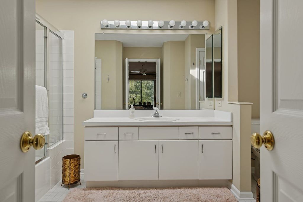 Fabulous expanded Augusta end-unit townhome in the premier guard-gated community of Lake Barrington Shores. Ideally positioned on Par 3, Hole #13 of the golf course and conveniently accessed via the resident only entry off Miller Road, this home delights from start to finish. A private courtyard welcomes you into an open-concept layout offering true one-level living, complete with a first-floor primary suite and laundry. Sun-filled living and dining areas feature vaulted ceilings and sweeping golf course views-perfect for family gatherings and entertaining. The living room boasts a cozy fireplace and balcony overlook, while the dining room flows seamlessly to the updated kitchen. The chef's kitchen impresses with sleek stainless steel appliances, granite counters, an island with breakfast bar, pantry closet, ample cabinetry, and planning desk. A charming breakfast area opens via sliders to the deck for alfresco dining or morning coffee. The main-floor primary suite is a retreat with hardwood floors, a large walk-in closet, and luxe ensuite bath with double sinks. A half bath and laundry room with direct entry to the two-car attached garage adds convenience and functionality. Upstairs, a spacious loft features a sitting area, while two additional bedrooms each boast ensuite baths-ideal for family or guests. The full finished English lower level provides flexible living space with a huge rec/game room complete with a double-sided fireplace and wet bar, full bath, exercise room/office, and abundant storage. Lake Barrington Shores offers unmatched amenities: a 100-acre lake with private beach and marina, golf course and clubhouse with restaurant, indoor and outdoor pools, fitness center, tennis and pickleball courts, plus miles of scenic walking and biking paths. Experience the ultimate in resort-style living in one of the area's most sought after gated communities. Estate Sale - property conveyed in AS-IS condition.