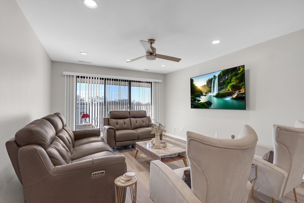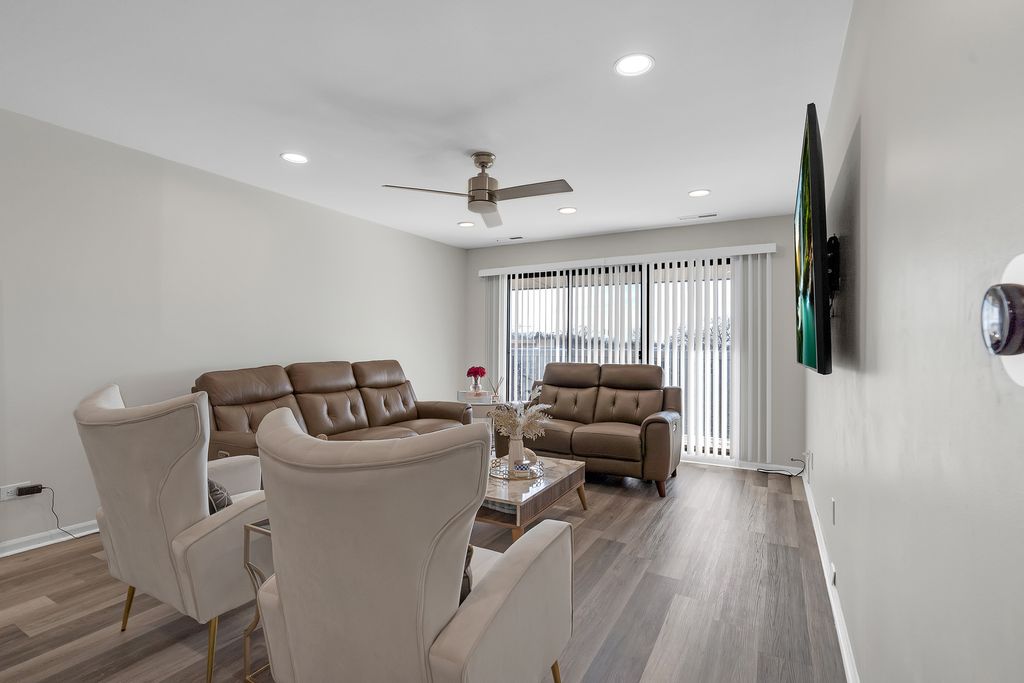 Step into homeownership with confidence in this beautifully renovated top-floor corner condo, thoughtfully designed with high-quality finishes throughout. The timeless kitchen features bright white cabinetry with elegant gold accents, a charming peninsula for everyday meals, and a custom coffee corner with a full-height backsplash that adds warmth and character. Both bathrooms offer clean, modern updates that feel fresh and inviting. Enjoy rare privacy and quiet living away from traffic noise in this top-floor corner unit. The building includes a fitness center and a party room perfect for hosting larger gatherings. Parking is a breeze with one corner garage space in a heated garage, one additional exterior space, and flexible outdoor parking available throughout the lot for residents and guests. Located in booming downtown Skokie-directly across from the library and steps from shops, workout studios, restaurants, and coffee spots-this home is move-in ready, ideal for those seeking modern living in a vibrant, walkable neighborhood. Pet Friendly. No Rentals.