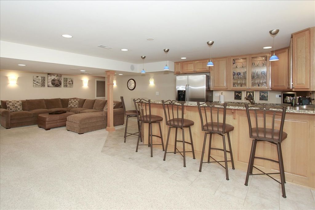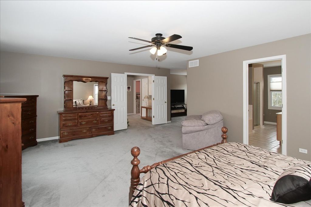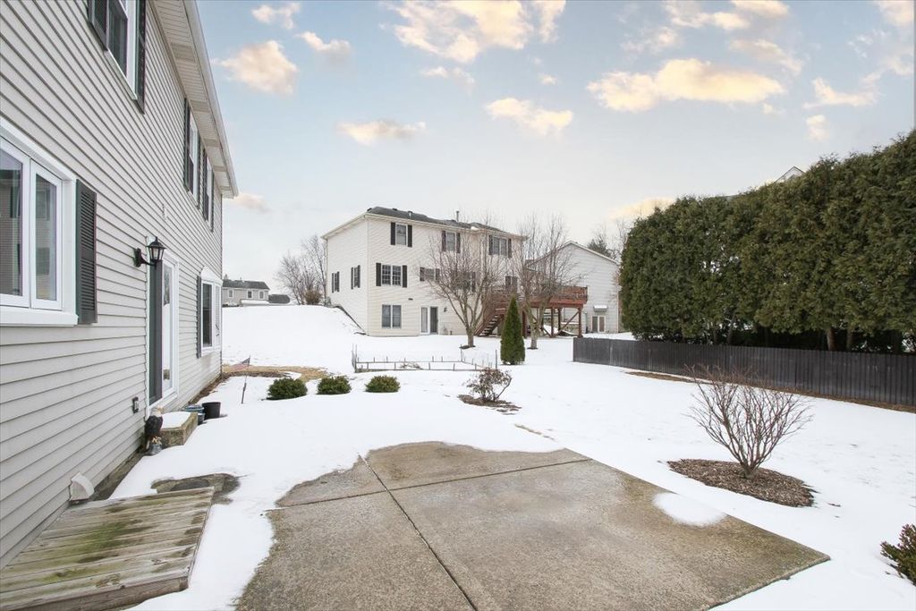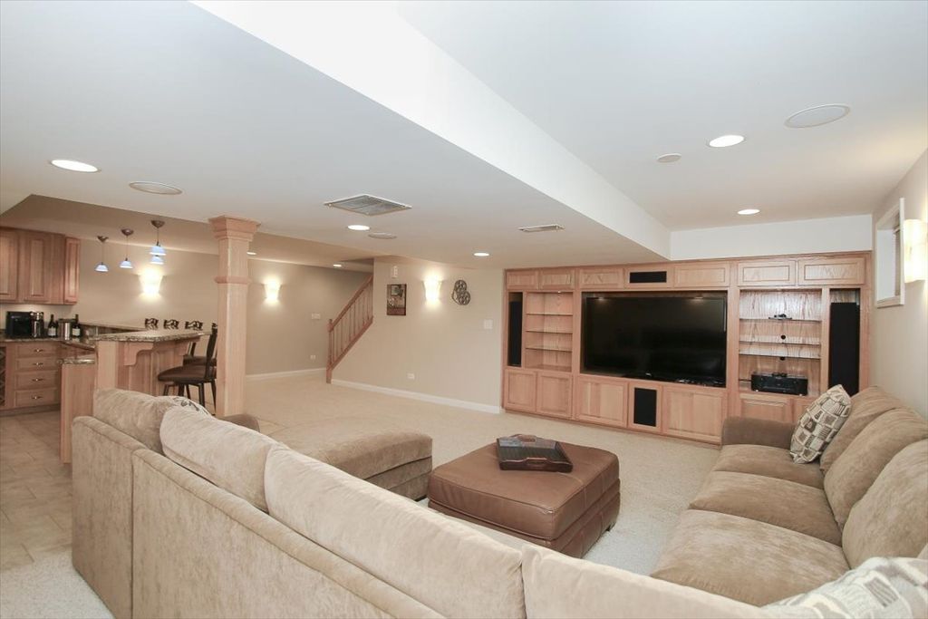 NEED A FOURTH BEDROOM?? This home offers the perfect blend of comfort and ultimate flexibility for your family's next chapter. The oversized primary suite has a double door entry and an inviting sitting room that can easily revert back to a fourth bedroom to adapt seamlessly to your evolving needs whether for a growing family, guests, or a dedicated nursery. The professionally finished full basement is the PERFECT place to host your family & friends' celebrations to create lasting memories!! Featuring a built-in home entertainment system including (6) in-ceiling Klipsch surround sound zone speakers, recessed lighting, large granite wet bar with seating for five, cabinetry with wine rack & textured glass display, full-size counter-depth GE refrigerator with icemaker and water dispenser, dishwasher, pendant accent lighting and (7) beautiful wall sconces throughout. The generously sized Home Office is a true command center that offers quiet privacy only a basement can provide. Featuring custom built-in workstations designed for maximum efficiency-- perfect for multiple users with dual workstations that includes built-in cabinets and bookshelves. The heart of the home has an expansive eat-in kitchen that boasts a large work island for additional counter space and small appliance storage. Abundant 42" oak cabinets provide significant shelf space and an elevated look! You'll love the convenience of the laundry/mud room adjacent to the kitchen that includes a laundry chute, upper 42" cabinets and a large coat closet. Entertain like a pro with a dedicated butler's pantry complete with its own prep sink! It is ideal for a coffee station, bar service, or keeping the main kitchen clutter-free during gatherings. This home shows beautifully with a harmonious loop that starts in the Grand two-story foyer and flows through wide open doorways that unite the formal living room to the family room, and the dining room to the kitchen. The bedrooms include ceiling fans, the second-floor bathrooms have double bowl vanities, the primary bath includes a soaking tub with a separate shower, and the primary walk-in closet has built-ins that include drawers. There is abundant organized and custom closet space throughout along with a (10x10) outdoor shed with a concrete pad, so you'll never run out of storage space! Exceptional curb appeal: Handsome brick elevation paired with a sophisticated hip roof and decorative brick window accents offer timeless appeal. You'll appreciate the new energy efficient Therma-Tru classic entry door with sidelights and new kitchen sliding glass door. The homesite is situated on a peaceful double court that offers minimal traffic and maximum privacy, a rare find in desirable Randall Ridge subdivision. Highly ranked D301 school district!