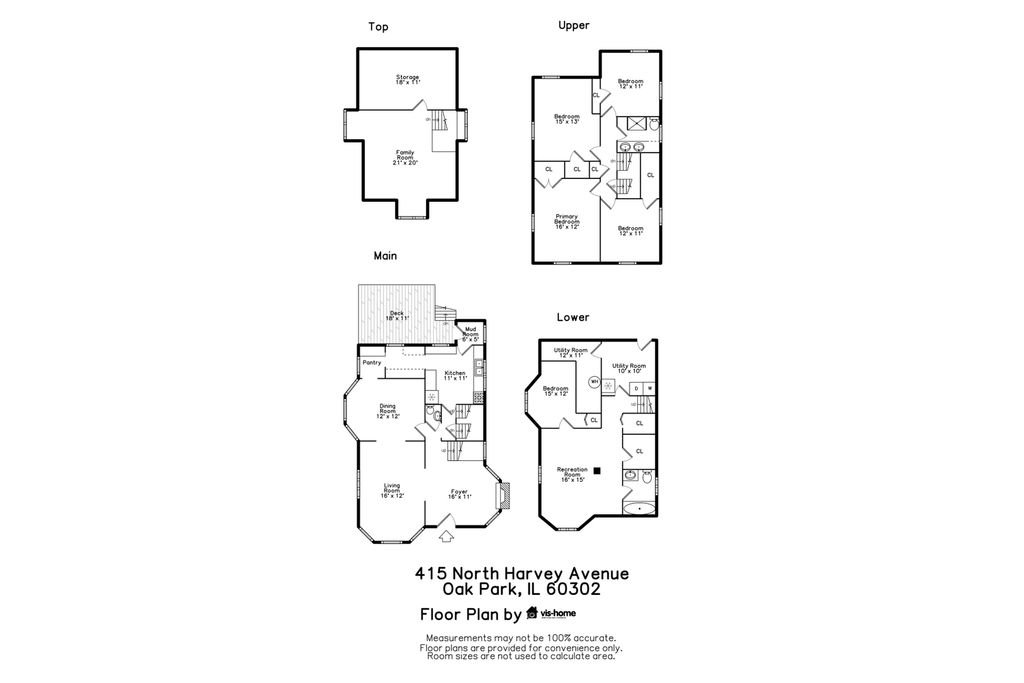 Welcome to 415 N Harvey! This is a 5 bed, 2.5 bath situated on an oversized 50x170 lot with tons of updates and improvements while maintaining that classic Oak Park charm! Step inside and you're welcomed to a combined living and dining area that is perfect for hosting and entertaining. The kitchen features a 2024 dishwasher, 2022 microwave, newly painted cabinets and 2024 backsplash. Once you step out of the kitchen, through the mudroom, and into the backyard, you will be greeted to one the largest backyards in the area! The standalone garage and basketball court was constructed in 2021. Imagine hosting large groups and parties during the warm spring and summer days! The second floor features four bedrooms and a full bath with soaking tub. One small flight upstairs leads you to a completely finished attic with additional storage. This space has its own dedicated heating source and is absolutely perfect for a WFH/office space. The finished walkout basement has a fifth bedroom - perfect for guests - along with a full bathroom also with a soaking tub. Additional upgrades throughout the home include a tankless water heater (2025), newer front porch (2022), remodeled first floor powder room (2025), all newer fencing (2020), SpacePak cooling system (2020), new electrical wiring in living, dining, foyer, and attic (2022), and all 34 windows were replaced in 2020 that includes a transferrable 20 year manufacturing warranty. This home is an entertainer's dream and won't last long!