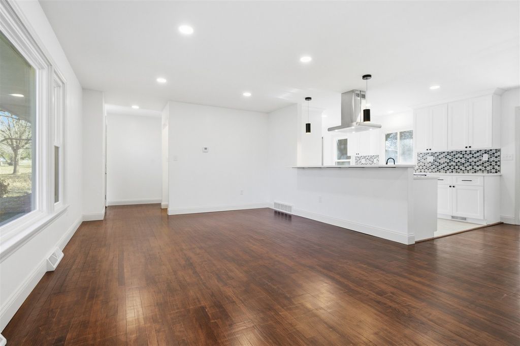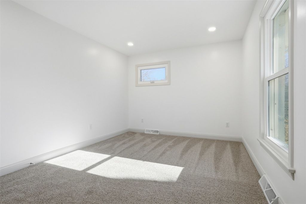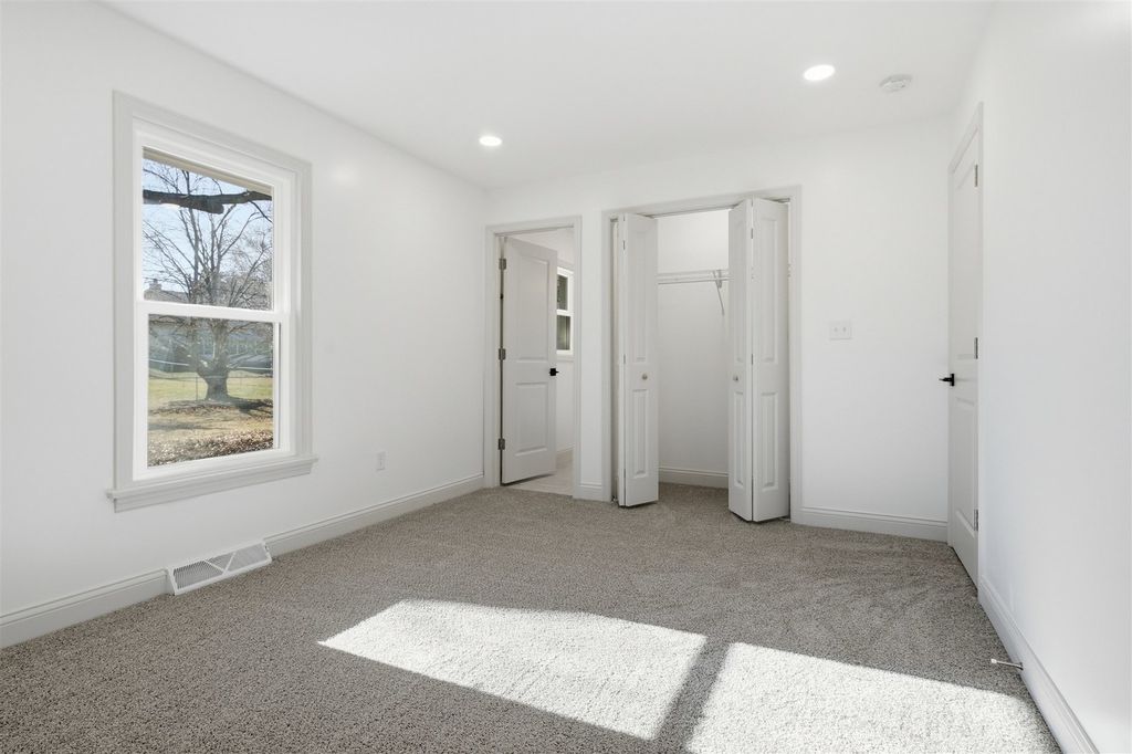 You must see this beautifully renovated east Bloomington residence boasting 2,850 sq. ft. of livable space, complemented by an 2-car garage spanning 720 sq. ft. with a depth of 30ft. This ranch style home features 4 spacious bedrooms and 3 baths. The basement is fully finished enhancing the overall living area. Recent renovations include a comprehensive overhaul of the electrical and plumbing systems, updated bathrooms and kitchen, new flooring throughout, and an HVAC system replacement in 2021. Interior highlights include a great room with vaulted ceiling and over 400 sq. ft. of space, a main floor living room and dining room. The finished basement offers ample storage. The kitchen is equipped with custom cabinets, quartz countertops, tile backsplash and high-end appliances. Additional features include electric and wood-burning fireplaces and a primary bedroom with an ensuite bath. Externally, the property spans 0.7 acres, accessible via a u-shaped driveway allowing for easy entry and exit.