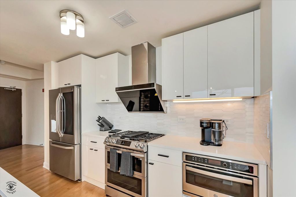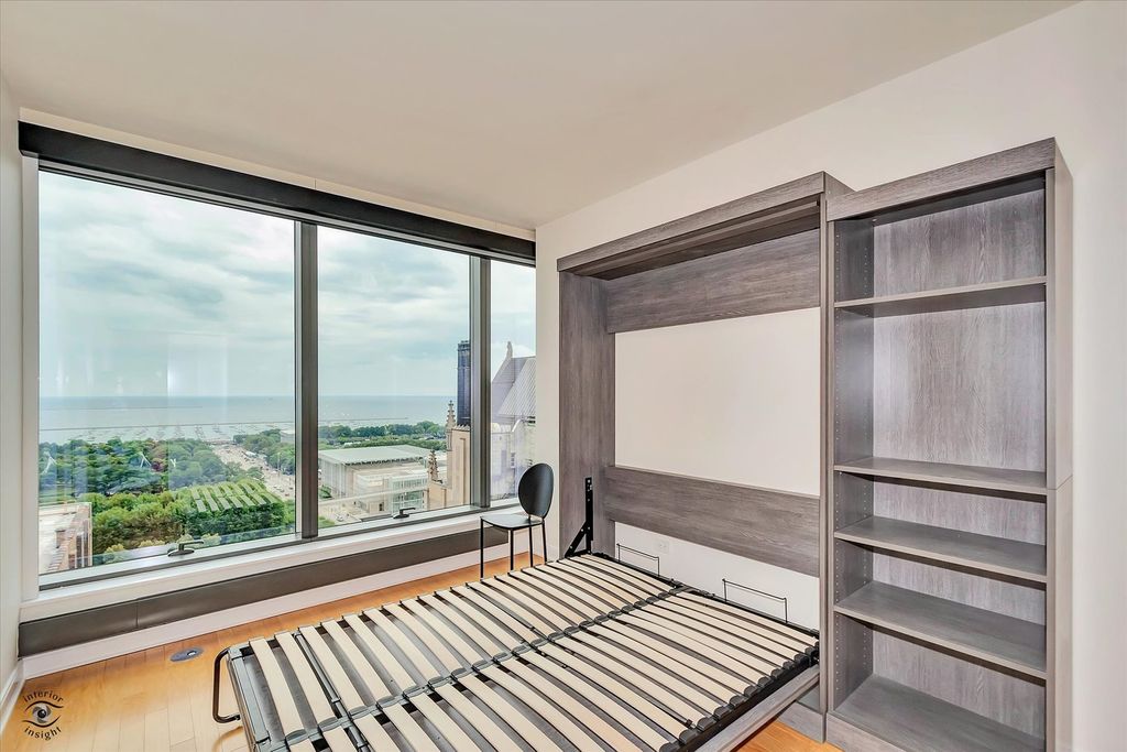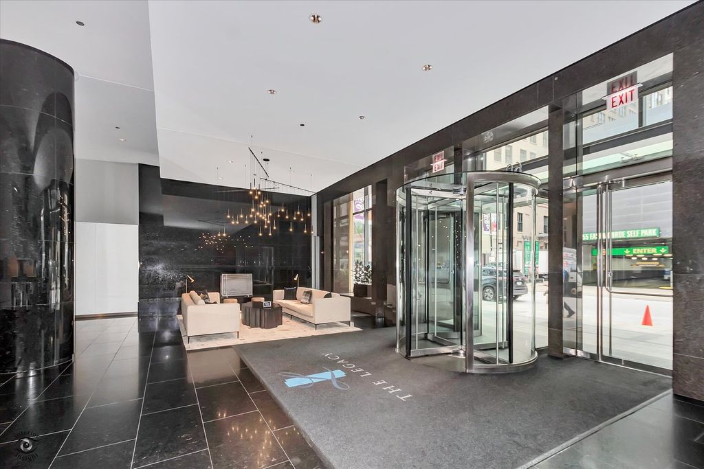 Beautiful 3 bedroom, 2.5 bath East facing home updated in a clean, contemporary style at the renowned Legacy building. You'll love the Lake, Park and Skyline views from the moment you walk in. Enjoy the floor-to-ceiling windows with luxurious built-in motorized shades in every room and hardwood floors throughout. From your living room, kitchen and third bedroom you will enjoy panoramic views overlooking Millenium Park and Lake Michigan. The chef's kitchen includes newly installed stainless steel appliances, an externally vented exhaust hood over the new stove complimented by under cabinet lighting, and a full white quartz tile backsplash. Contemporary drop-down fixtures over counters of white quartz complete the look. The main suite features a huge walk-in closet, a wall closet, and a recently updated bathroom with a soaking tub, separate walk-in shower, and a floating double vanity with a large mirror featuring a defogging system and contemporary tiles. The view from the main bedroom is of treetops and greenery just outside your window thanks to the roof top park two floors below - beautiful and rare in the city. Bedroom 2 features views over the balcony, a wall closet and a newly renovated bathroom with a walk-in shower, floating vanity, and washer/dryer across the hall. Bedroom 3 is entered from the living room and includes a wall closet with gorgeous views as well as a convenient Murphy bed allowing it to double as additional living space. Price includes a 5th Floor Parking Spot. The Legacy is known for its active social community whose more than monthly events are enjoyed by many residents. Within a few blocks is the convenience of many unique and varied shops, theaters, some of Chicago's best restaurants, as well as easy access to transportation services. A nice benefit for University Club members, or those who wish to join, is a private, indoor entrance to the Club just for residents of The Legacy. Front door staff are present at all hours to assist residents and their guests. The Legacy provides resort-like living with an indoor heated lap pool, whirlpool spa, exercise room, steam room, club rooms, several roof decks with lake and city views (especially for fireworks!), a private dog-walk, bike room, an on-site engineer, dry cleaning and a package receiving service. EV charging station can be installed. Financing now available.