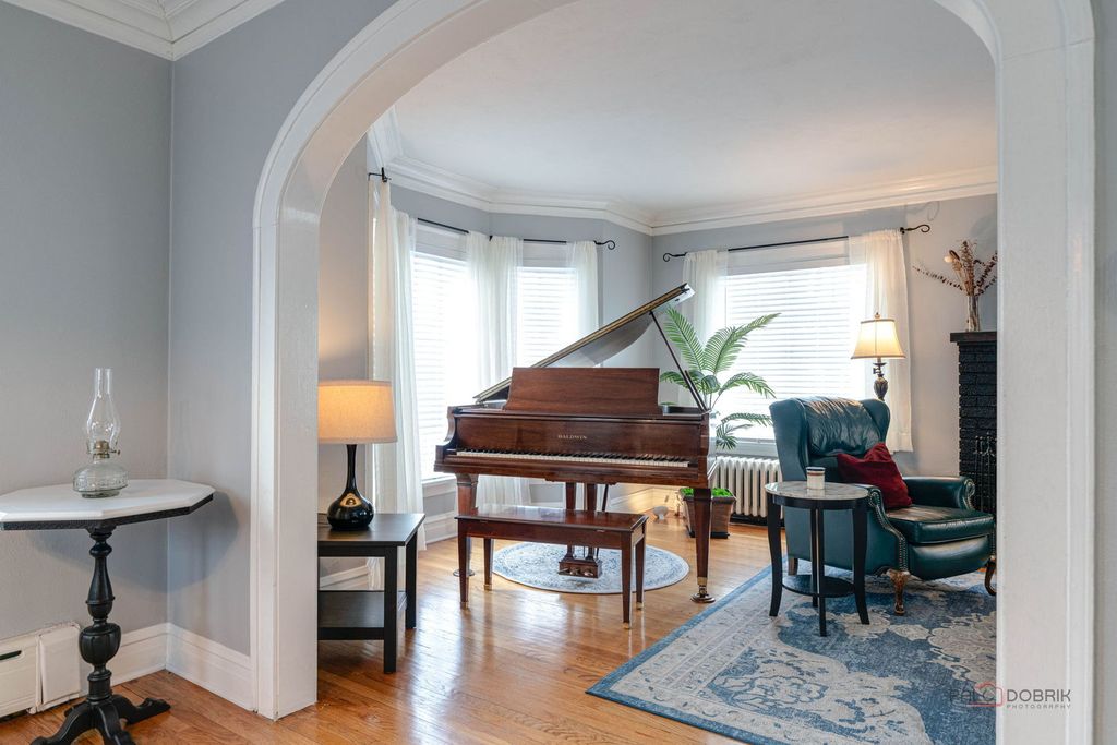 Charming brick tudor on beautiful Jackson St. Arches, wood floors and living room with a fireplace give this well maintained home a very welcoming and cozy atmosphere. Enclosed Foyer. Spacious Kitchen with small mudroom and side exit. Separate formal Dining room. Basement has a full bath and is partially finished.