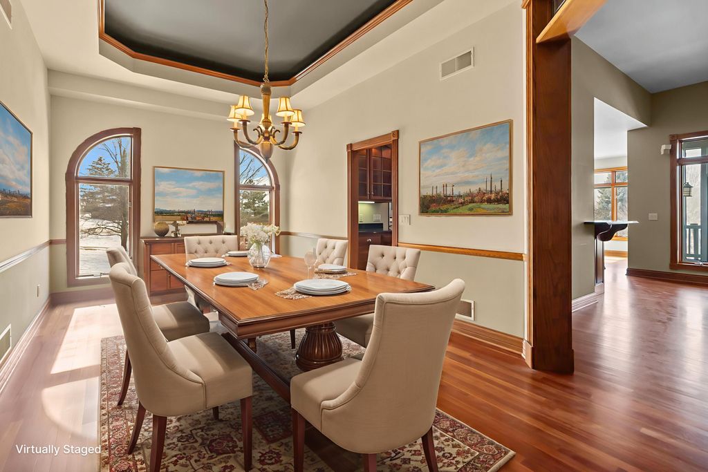 Discover the perfect blend of luxury, comfort and functionality in this meticulously designed 5 bedroom, 3.1 bath custom walkout ranch. Sprawling on over a half-acre gently sloped cul de sac lot overlooking greenspace. This home offers expansive views and just minutes from beautiful Geneva Lake and local amenities. From the moment you step inside, the 11' soaring ceilings and abundant natural light create a welcoming atmosphere. Rich Brazilian cherry hardwood flooring flows throughout the main living area highlighting the superior construction and attention to detail. The chef's kitchen with walk-in pantry, butler's area, cherry cabinetry and granite counters include a breakfast bar and table area. In addition, a dedicated separate dining room adjacent to the kitchen is perfect for hosting elegant dinners while the open kitchen design makes daily life effortless. The master bedroom suite is enhanced with a step ceiling and access to the bath with 2 walk-in closets, step in shower and whirlpool tub. A stunning second bedroom can also be used as a quiet home office or den with impressive vaulted ceiling. Many options for this bright and airy room which shares a full bath with a third bedroom. Enjoy the warmth and ambience of two fireplaces-a focal point in the main level living/great room and another in the sunny walkout lower level. The spacious lower level is perfect for entertaining, media or hobbies with storage space and a workshop. Two additional bedrooms with adjoining bath ensures room for everyone. This is a very versatile space offering privacy and flexibility for guests, family or fitness needs. The 3 car attached garage with 8 foot high doors is an added bonus for oversized vehicles. Enjoy sunsets with a favorite beverage on the screened porch or cookouts on lower level expansive paver brick patio. Close proximity to Chicago and Milwaukee and conveniently located to major transportation, shopping, health care facilities, dining and entertainment. Delight in all the beauty that is offered in the Geneva Lakes area by home ownership and municipal lake rights.