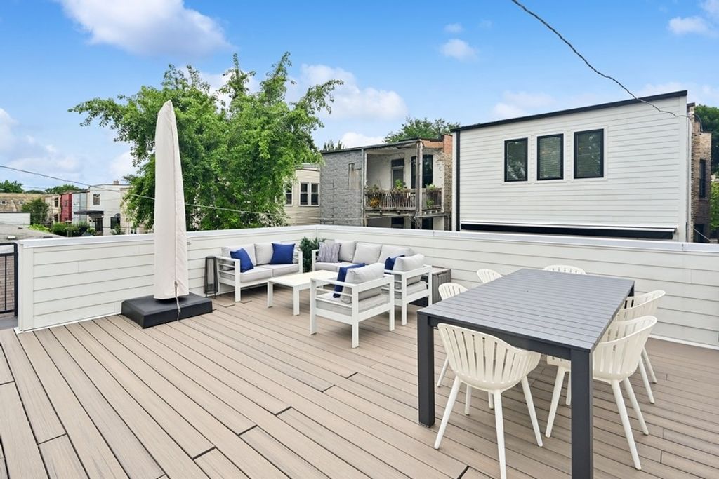 Newly re-constructed in 2023, this luxury home situated in the heart of vibrant Logan Square is a 5-minute walk to the Blue Line station and all of the great shopping, restaurants and nightlife that this sought-after neighborhood has to offer. The property is located on a community-focused and welcoming block of N Albany Ave and would be perfect for families and couples alike."Experience Elevated Living in the Heart of Logan Square Welcome to 2708 N Albany-a beautifully designed, expansive single-family home offering over 4,200 square feet of luxurious living space in one of Chicago's most vibrant neighborhoods. With 6 bedrooms and 4.1 bathrooms, this home is ideal for growing families, multi-generational living, or anyone who loves to entertain in style. Step inside to soaring 10-foot ceilings, 8-foot solid-core doors, and white oak flooring that runs throughout the main and upper levels, creating a warm and refined atmosphere. At the heart of the home is a chef's dream kitchen featuring WiFi-enabled Thermador professional-grade appliances, an oversized 9.5-foot island with bar seating, quartz countertops, crisp white shaker cabinetry, a walk-in pantry, and a spacious eat-in dining area. The sun-filled family room seamlessly connects to the kitchen and is highlighted by exposed wood ceiling beams and a sleek, recessed gas fireplace for cozy evenings at home. A 12-foot rear addition enhances the upstairs footprint, allowing for four generous bedrooms-including a show-stopping primary suite with a spa-quality bathroom. Indulge in heated floors, dual vanities with quartz countertops, a water closet, freestanding soaking tub, and a luxurious steam shower with rain head, built-in bench, and glass enclosure. The fully finished lower level includes two additional bedrooms, a full bath, a large recreation room with a mini wet bar, a utility room, and additional storage-including hookups for a second laundry area. The floor on that level is already plumbed to be heated. Out back, enjoy a private, fenced yard with a brick paver patio perfect for grilling and relaxing. A 2.5-car garage is topped with a composite rooftop deck, offering even more outdoor space for entertaining or unwinding. This home combines timeless design with modern convenience-every detail thoughtfully considered. Come see it for yourself and fall in love. Welcome home to 2708 N Albany.