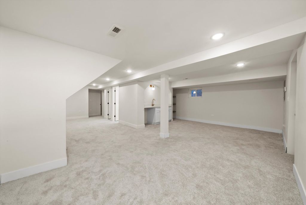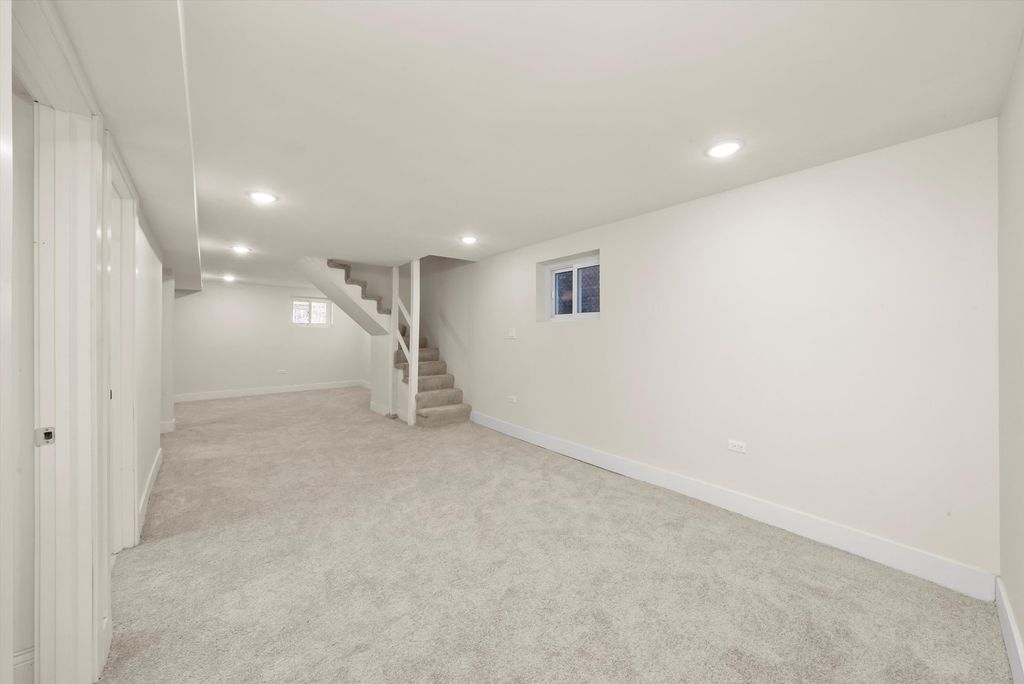 This beautifully reimagined brick home blends timeless Chicago architecture with fresh, modern updates across three levels of living space. Featuring 5 spacious bedrooms and 3 full bathrooms, every inch has been thoughtfully designed for comfort, functionality, and style. Step through the covered front porch into a bright and inviting living room anchored by a crisp white fireplace and large picture windows. The open layout flows seamlessly into a formal dining room with custom millwork, crown molding, and a striking modern chandelier - perfect for entertaining or everyday living. The brand-new kitchen offers clean, contemporary design with white shaker cabinets, quartz countertops, stainless steel appliances, and ample workspace. Each bedroom provides generous space and natural light, while all three full bathrooms have been completely renovated with custom herringbone tile surrounds, modern vanities, and sleek fixtures for a refined, spa-inspired feel. Upstairs, enjoy a spacious loft-style suite with new flooring and a designer bathroom, while the fully finished basement expands your living options - ideal for a family room, guest suite, home gym, or office. The basement also includes a wet bar, plush carpeting, and updated lighting throughout. Outside, relax on the covered front or back porch, or enjoy the fenced backyard - perfect for gatherings, kids, or pets. A two-car garage offers convenience and security. Nestled on a peaceful, tree-lined street, this home is close to parks, schools, shops, and public transit. With its blend of classic character and modern comfort, this is a true move-in-ready gem.