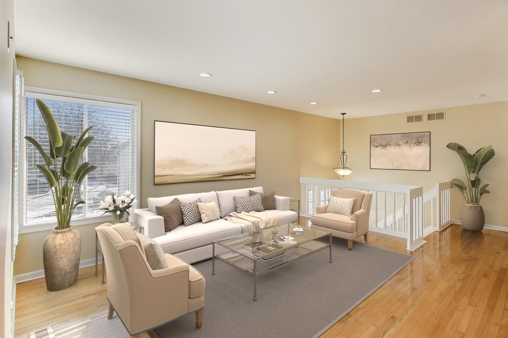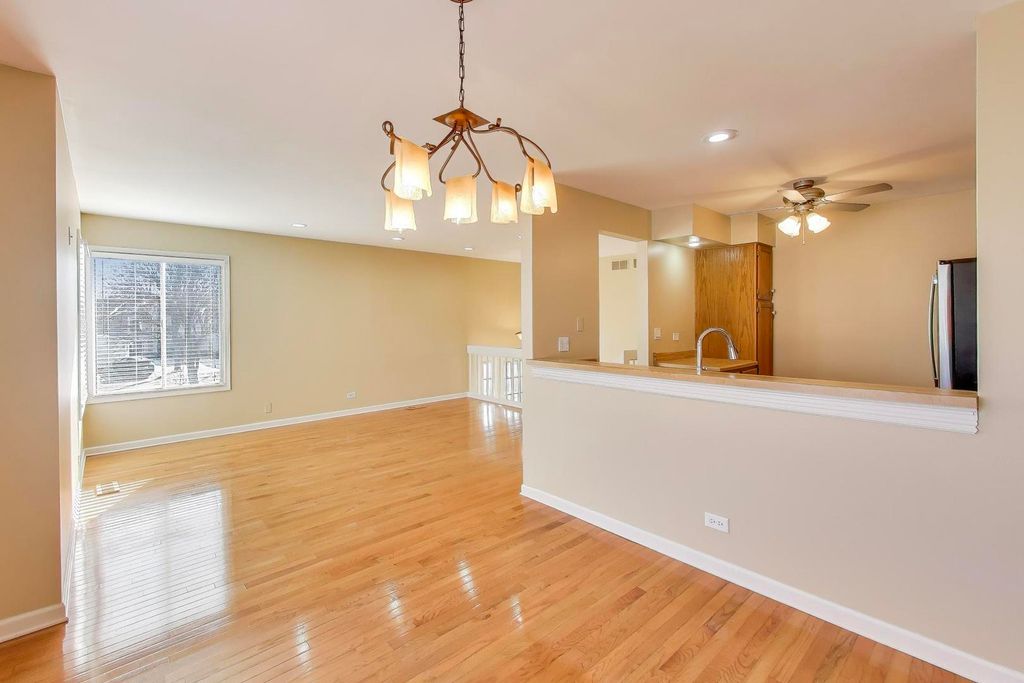 Fantastic move-in end unit next to open green space in wonderful Winfield Square Subdivision. This light-filled unit has 3 spacious bedrooms plus 2 updated baths with beautiful hardwood floors on main level and stairs. Lower level boasts a large family room that leads out to green space through sliding glass doors. Laundry room and attached 1 car garage for convenience. White wood blinds, recessed lighting in living room plus full dining room "L". Enjoy the ease of this maintenance free home which feels like a single family residence with all of the great, open space. Close to Illinois Prairie Path, shopping and Central DuPage Hospital, yet tucked away in a quiet residential area. Home is in a '10' condition but being conveyed "as-is" through an estate.