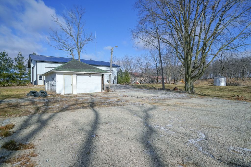 Step into timeless charm with this classic 4 square farmhouse, bursting with original woodwork, character, and thoughtful updates throughout. The main floor offers a versatile and welcoming layout featuring a kitchen with gorgeous built-ins, a formal dining room, a cozy living room, and an additional family room that could easily serve as a main-floor bedroom or home office. Upstairs, you'll find four generously sized bedrooms, each with large closets, along with a full bathroom that serves the upper level. Outside, the property truly shines with a 60x40 outbuilding, perfect for hobbies, storage, or a home-based business. Situated on 2.44 acres, the partially fenced yard provides space to roam, garden, or relax and enjoy the professionally landscaped grounds with paver brick features. Numerous updates add peace of mind, including a furnace and AC just 5 years old, newer windows and roof within the last 10 years, an updated septic system, and trenching completed around the foundation to aid in waterproofing. All of this is located in the award-winning Pecatonica School District, offering the perfect blend of country living and modern convenience. This is a rare opportunity to own a home that honors its history while embracing today's comforts.
