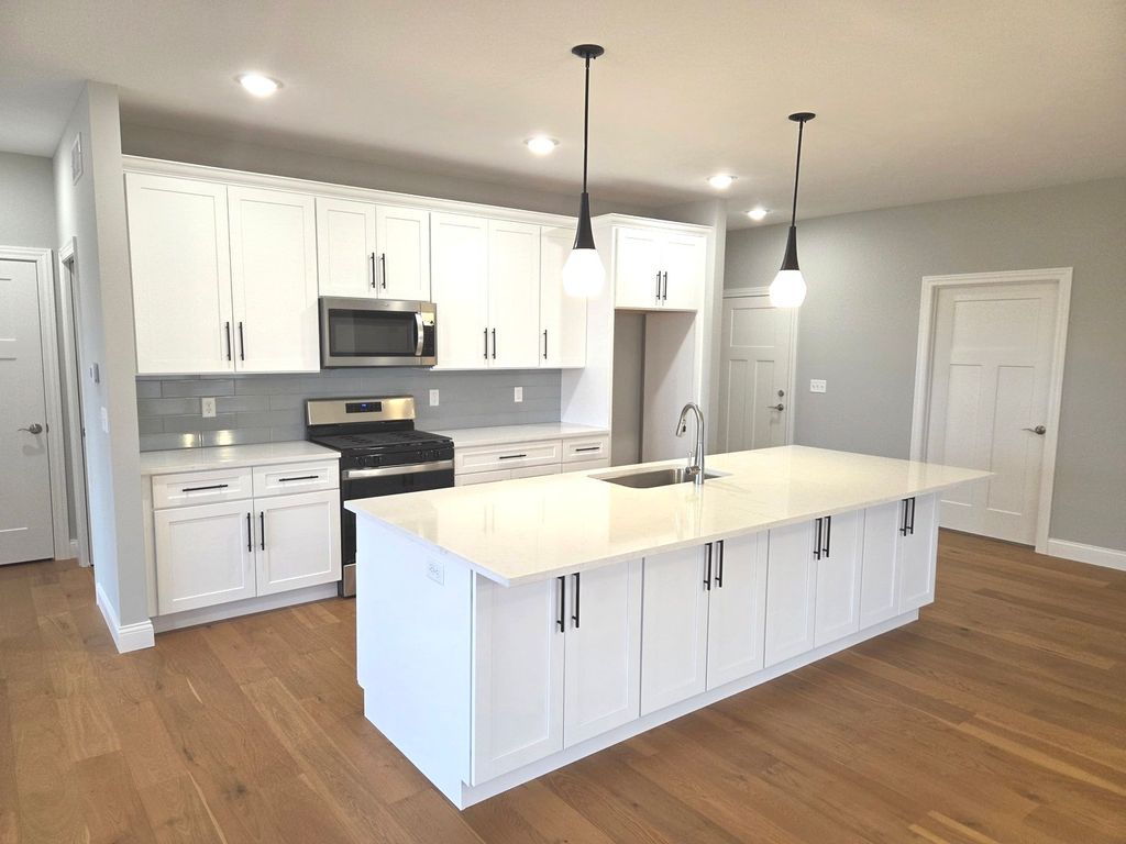 Awesome New Construction Near The Den at Fox Creek Golf Course! Enjoy a truly low-maintenance lifestyle in this brand-new zero-lot home ideally positioned near The Den at Fox Creek. Thoughtfully designed with today's buyer in mind, this residence features an open-concept floor plan that's perfect for both everyday living and entertaining. The spacious kitchen is the heart of the home, showcasing sleek quartz countertops and a large center island that seamlessly connects to the living area. The private primary suite offers a relaxing retreat, complete with a full bath and a generous walk-in closet. Quality craftsmanship and modern efficiency are found throughout, including 26 exterior construction, energy-saving LED puck lighting, USB charging outlets, a Wi-Fi programmable thermostat, a high-efficiency HVAC system, and MyQ smart garage door access for added convenience. Association fees cover street snow removal, lawn care, and the underground sprinkler system-providing worry-free living year-round. Offering exceptional value in brand-new construction, this move-in-ready home is complete and available for immediate occupancy.