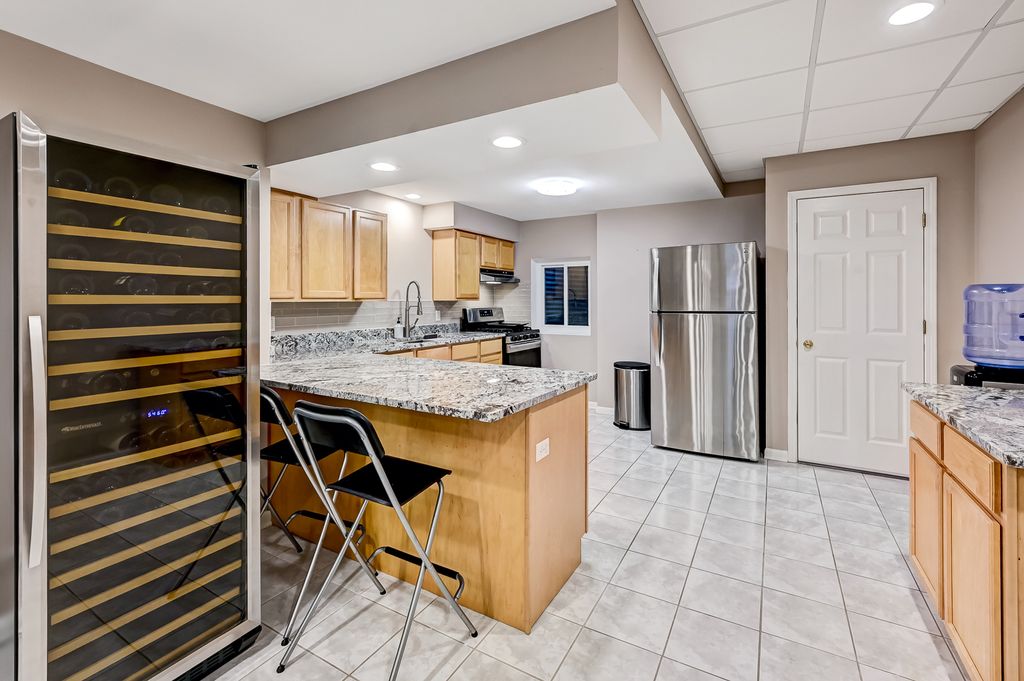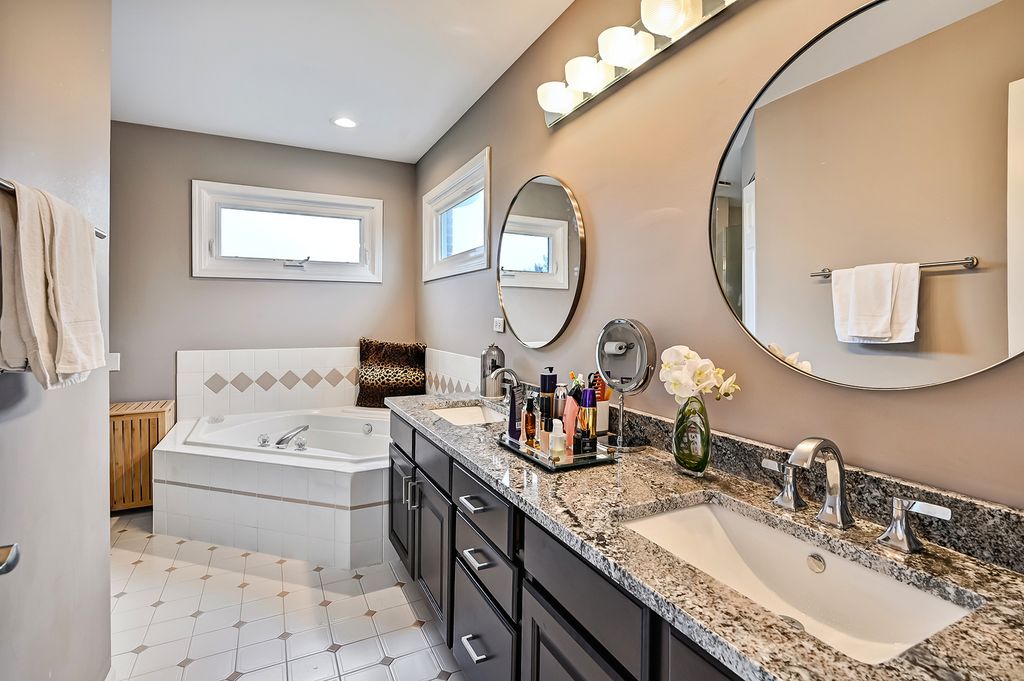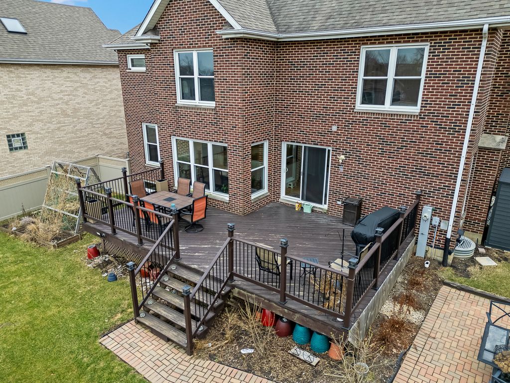 Nestled in a tranquil cul-de-sac, this solid brick two-story home offers the ideal blend of comfort, charm, and modern updates. Step inside to discover a thoughtfully designed layout featuring a formal living and dining room, plus a versatile first-floor office bathed in southern light-easily convertible to a bedroom if needed. The newly renovated (2025) eat-in kitchen is a chef's dream, boasting sleek stainless steel appliances, elegant granite countertops and backsplash, white cabinetry, an instant hot water dispenser, and a convenient pull-out pantry. Adjacent to the kitchen, the inviting family room with a classic brick fireplace is perfect for cozy evenings. Additional main-level highlights include a laundry/mudroom, newer wood flooring throughout the main and second levels, neutral paint tones, and crown moldings that add a touch of sophistication. Upstairs, the primary suite offers a serene retreat with a walk-in closet and a private ensuite featuring a whirlpool tub, separate shower, newly refinished cabinets and granite countertop (2026) and dual sinks. Three additional bedrooms and a beautifully updated hallway bathroom complete the second level. The finished basement is an entertainer's delight, complete with a second kitchen featuring granite counters, newer appliances, and a large walk-in pantry. The expansive rec room, updated with new ceiling tiles and carpeting, is filled with natural light from above-grade windows. A bonus exercise room or potential bedroom, along with a full bathroom, makes this space as functional as it is stylish. Step outside to a backyard oasis with a large deck, brick patio, and fenced yard-perfect for summer gatherings. The lush landscaping includes vibrant flower and vegetable gardens, berries, and fruit trees. An oversized 2.5-car attached garage with a storage pad ensures ample space for vehicles and tools. This home has been meticulously maintained with numerous updates since 2015, including new windows and treatments, a tear-off roof, wood flooring, a 75-gallon water heater, ejector and sump pumps, a security system, a newer fence with a lock, a new deck and patio, and a central air unit. Located minutes from shopping, dining, major highways (355/290), and just 20 minutes from O'Hare, this home combines convenience and community. Enjoy the close-knit neighborhood feel, and watch the Addison and Itasca fireworks from the open field at the end of the cul-de-sac. This is more than a home-it's a lifestyle.