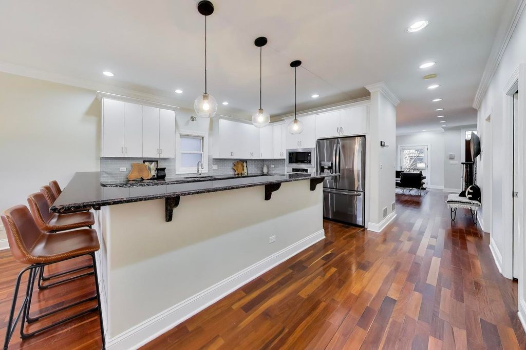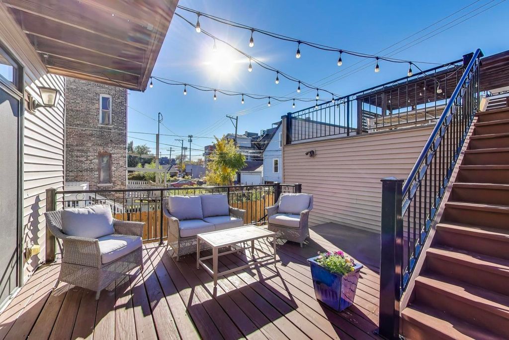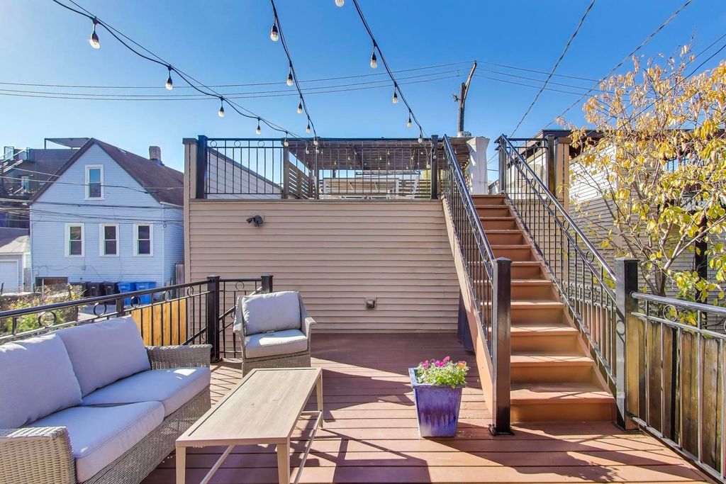 Built as new construction in 2007, this stunning single-family home has been thoughtfully designed and meticulously maintained. Offering 5 bedrooms and 3.5 baths, this sun-drenched residence truly checks every box. The highly desirable floor plan features three spacious bedrooms and two full baths on the second level, including a luxurious primary suite with soaring ceilings, abundant storage, and a spa-like bath complete with an oversized shower, whirlpool tub, expansive double vanity, and exceptional built-in storage. The main level is an entertainer's dream, anchored by an oversized great room and a beautifully appointed kitchen at the heart of the home. Kitchen highlights include newer appliances, expansive granite countertops, tons of 42' classic flat panel cabinetry, pantry closet, and generous counter seating. A formal living and dining room with a built-in, wet bar complete this level, offering both everyday comfort and elevated entertaining spaces. The finished lower level offers a versatile recreation room, 2 more bedrooms, a full bath, and plentiful storage-truly a "Midwest basement" complete with a basement refrigerator, deep freezer, and slop sink. Significant updates and features include smart home technology, major mechanical improvements include both furnaces, one AC within last few years, and cosmetic updates throughout. Enjoy exceptional outdoor living with multiple private spaces, including a bluestone patio at the front of the home, a serene terrace off the primary suite, and a deck off the family room that seamlessly leads to the show-stopping rooftop deck and pergola. Completely rebuilt in 2020, the rooftop retreat features Trex decking, a new torch-down roof, and a custom, heavy-duty pergola integrated directly into the deck's structural framing for long-term durability. Ideally situated mid-block for added privacy, this home sits at the crossroads of Wicker Park, Bucktown, Logan Square, and Humboldt Park-just steps from The 606 Trail, Blue Line CTA, dining, nightlife, parks (walk to both Maplewood Park and Humboldt Park), and more. Enjoy easy access to I-90 and I-290, protected bike lanes, Divvy stations, neighborhood groceries, major retailers, and beloved local coffee and dining favorites. This is a rare opportunity to own a truly turnkey home in one of Chicago's most dynamic and walkable neighborhoods.