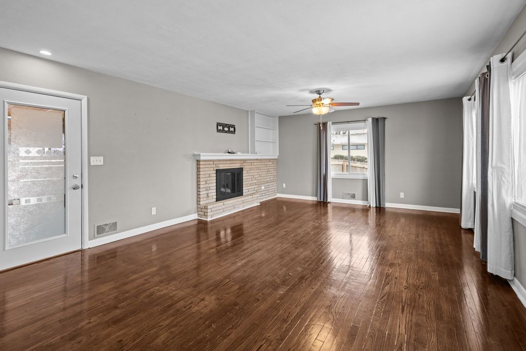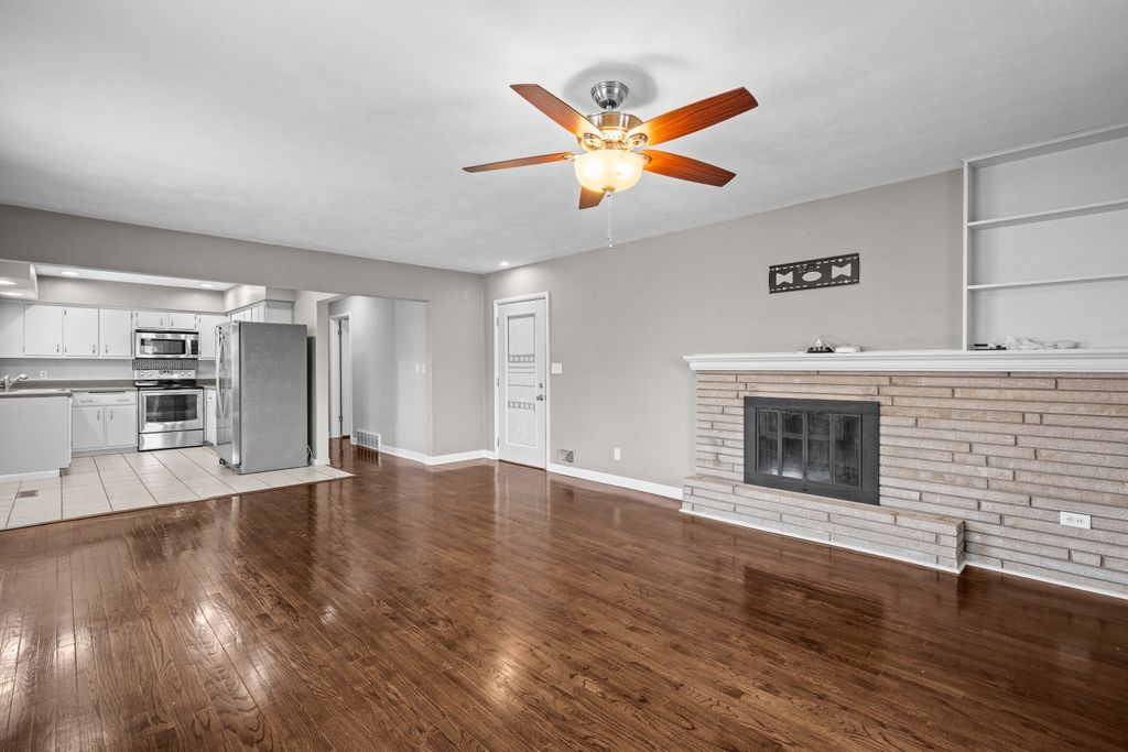 Beautifully maintained three-bedroom, two-bath residence offers timeless comfort . The home is truly move-in ready and showcases two fireplaces along with a sun-filled walkout basement that enhances both functionality and natural light. Three bedrooms on main have custom built in closets. The lower level features a non-conforming fourth bedroom with a generous walk-in closet, ideal for guests, a private home office, or refined flex space. Outdoor living is effortlessly elevated with a private deck overlooking a fully fenced yard, perfect for entertaining or quiet relaxation. A spacious three-season room just off the garage provides an additional retreat-like living area, while a large patio, fully finished basement, storage shed, and extra parking slab add both convenience and versatility. Extensive recent upgrades ensure peace of mind and lasting value, including all new windows, fence, deck boards and stairs, and French patio doors (2022), water heater and furnace (2023), and A/C (2024).